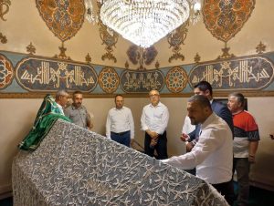 İl Başkanı Ali Kemikkıran ve Nevşehir Belediye Başkanı Dr. Mehmet Savran’ın da yer aldığı heyet Hacıbektaş Veli dergahını da ziyaret ederken, Belediye Başkanı Arif Yoldaş Altıok’tan da hazırlar hakkında bilgiler aldı.