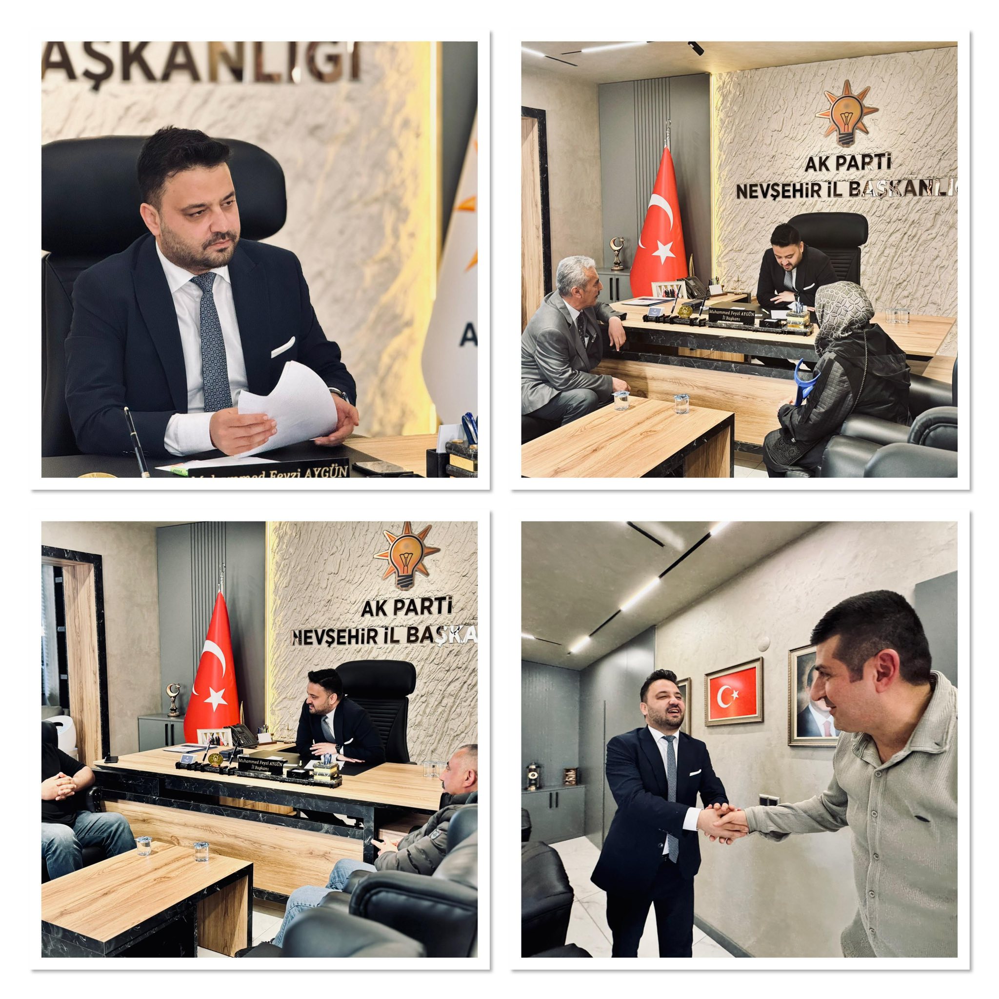 AK Parti Nevşehir İl Başkanı M. Feyzi Aygün, il başkanlık binasında düzenlenen “Gönül Buluşmaları” kapsamında vatandaşlarla bir araya geldi. Geleneksel hale gelen bu buluşmalarda Başkan Aygün, vatandaşlarla birebir görüşerek onların talep, öneri ve sıkıntılarını dinledi.