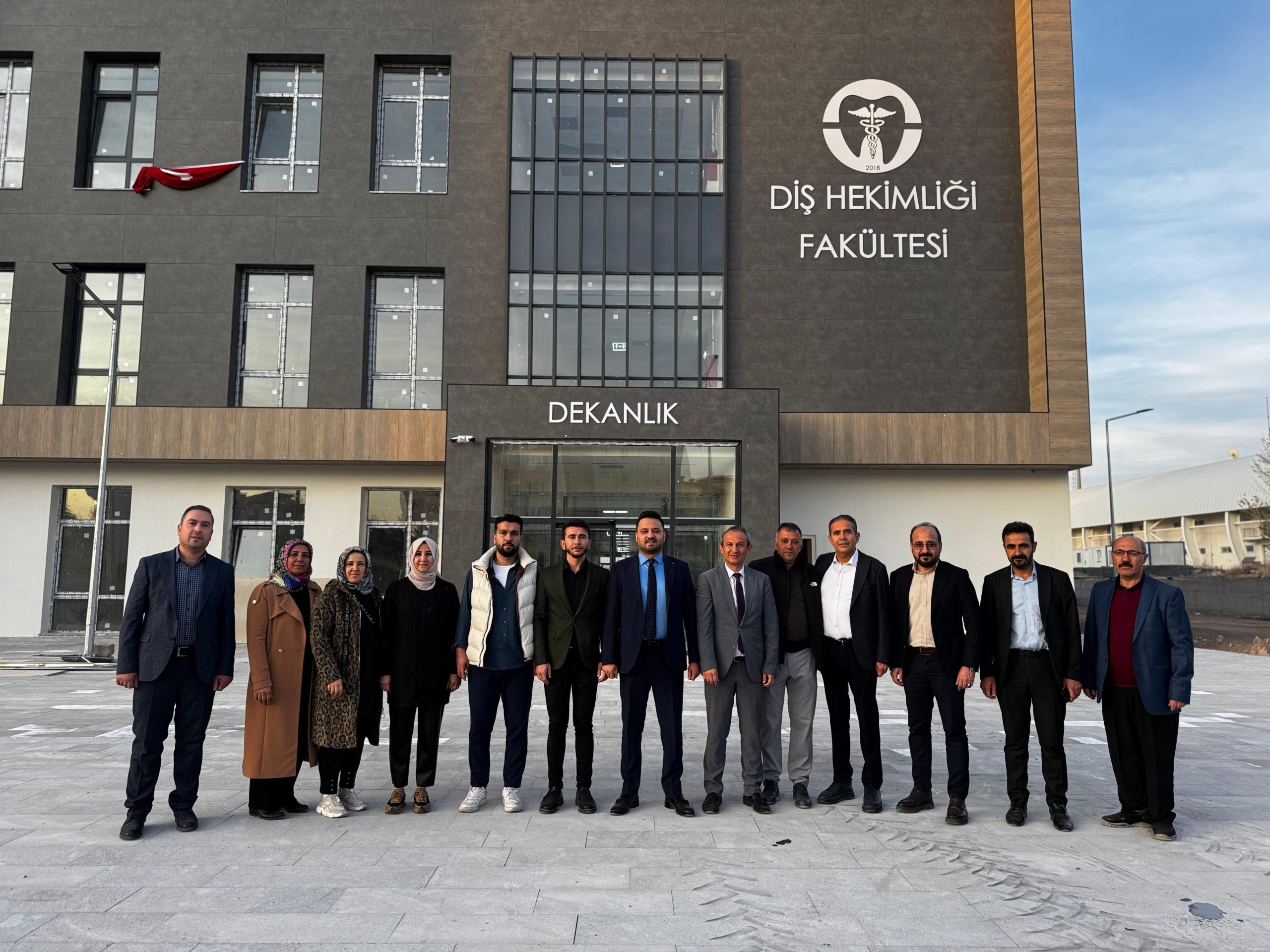 Aygün ve beraberindeki heyet, yapımı son aşamaya gelen yeni Diş Hekimliği Fakültesi binası ile diş hastanesinde incelemelerde bulunarak yürütülen çalışmalar hakkında bilgi aldı.