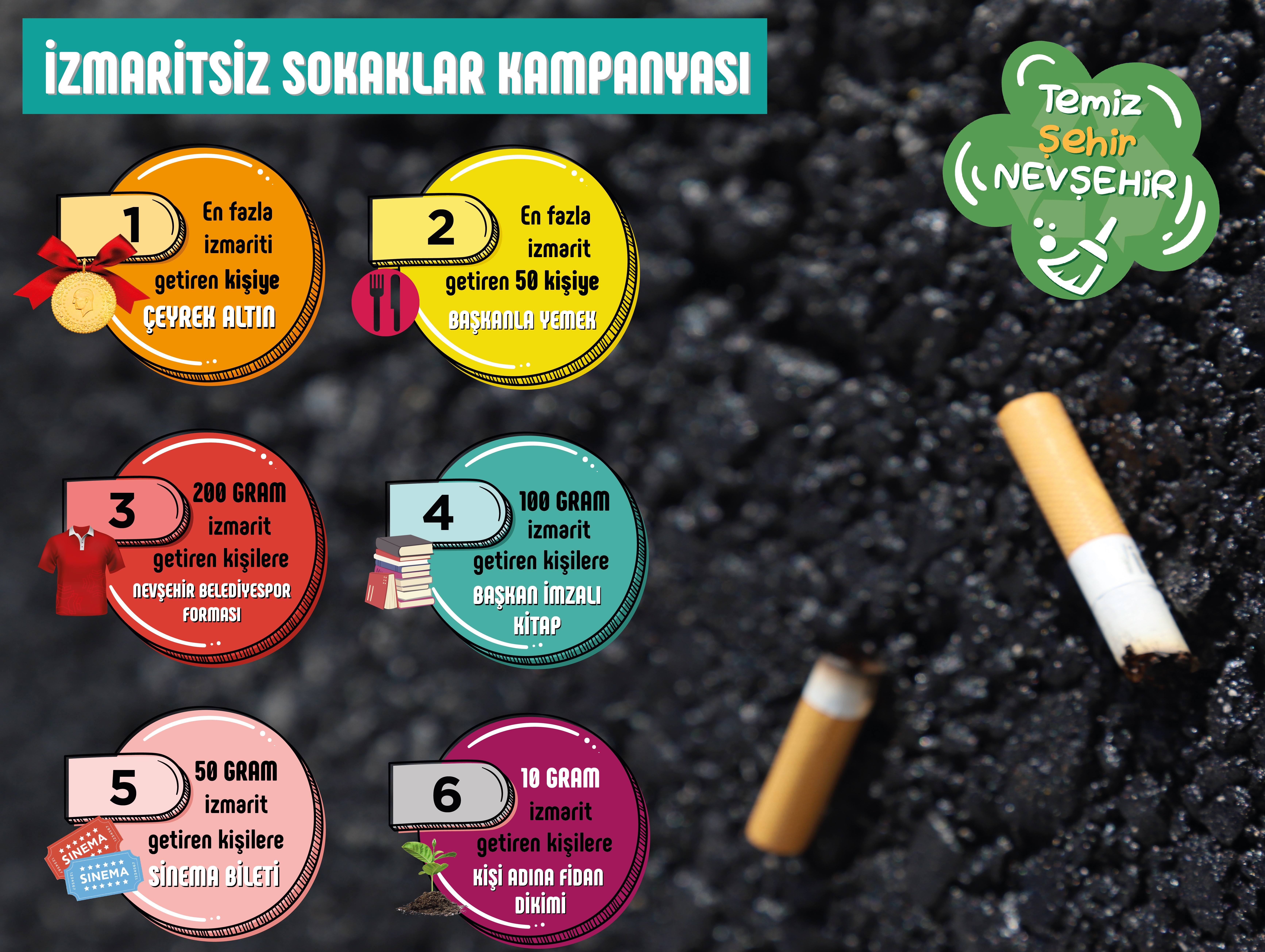 Nevşehir Belediyesinden Ödüllü Sigara İzmariti toplama kampanyası