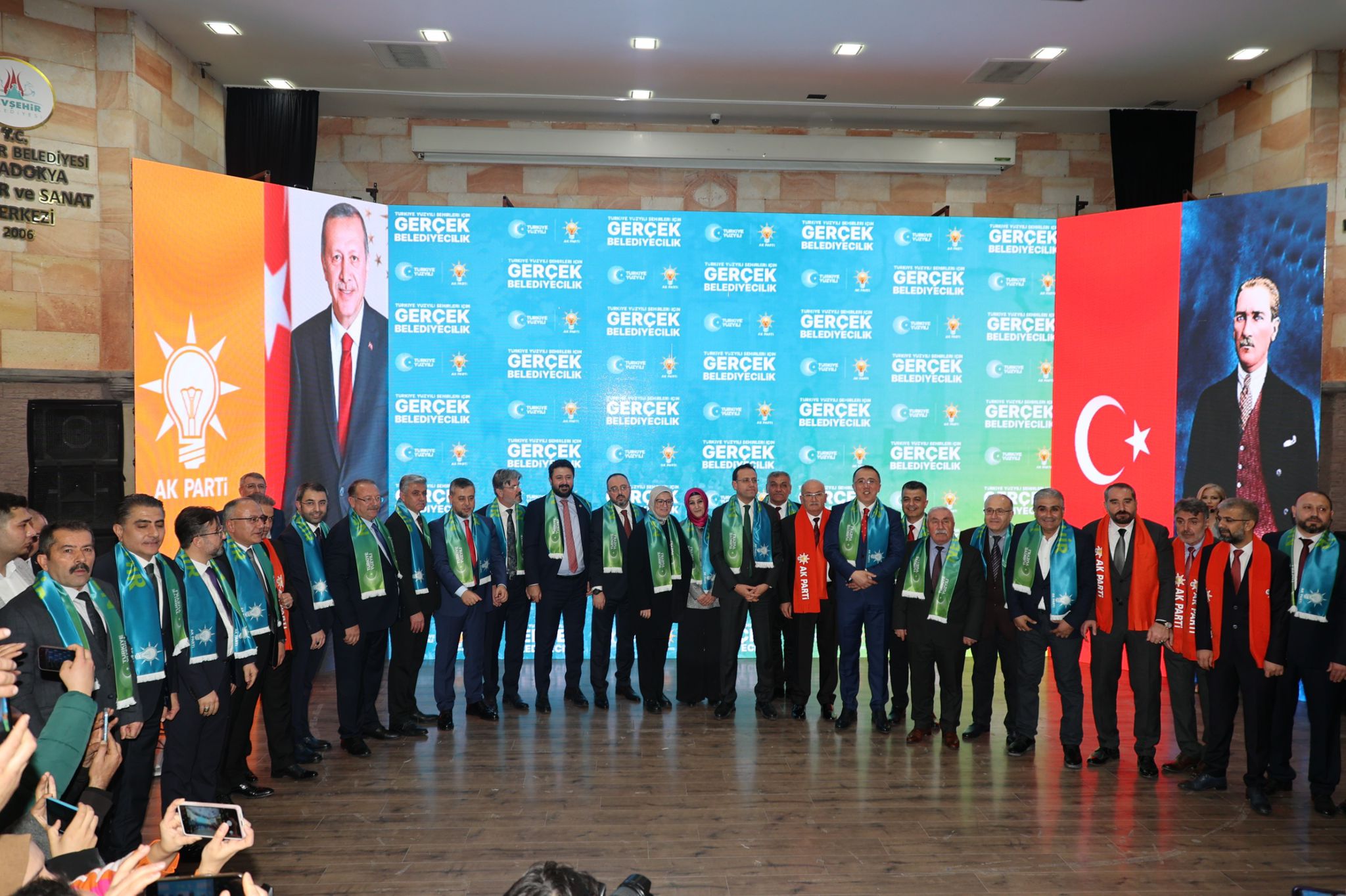 Uygur, konuşmasının ardından AK Parti ilçe ve belde belediye başkan adaylarını açıklayarak sahnede adaylarla birlikte fotoğraf çektirdi.
