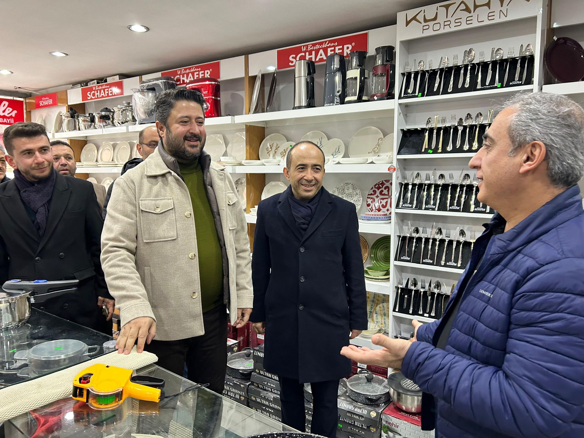 Ziyaret kapsamında cadde üzerindeki iş yerlerini tek tek gezen heyet, esnaflarla sohbet ederek talep ve beklentileri dinledi. Samimi bir ortamda gerçekleşen ziyarette, esnafın sorunları ve önerileri hakkında görüş alışverişinde bulunuldu.