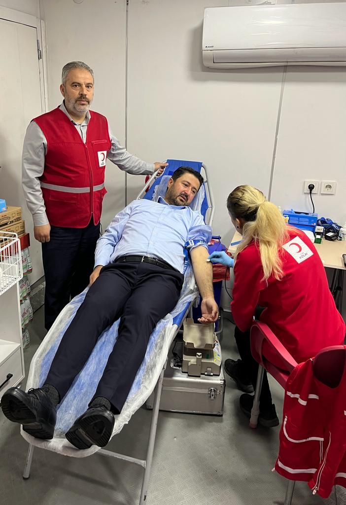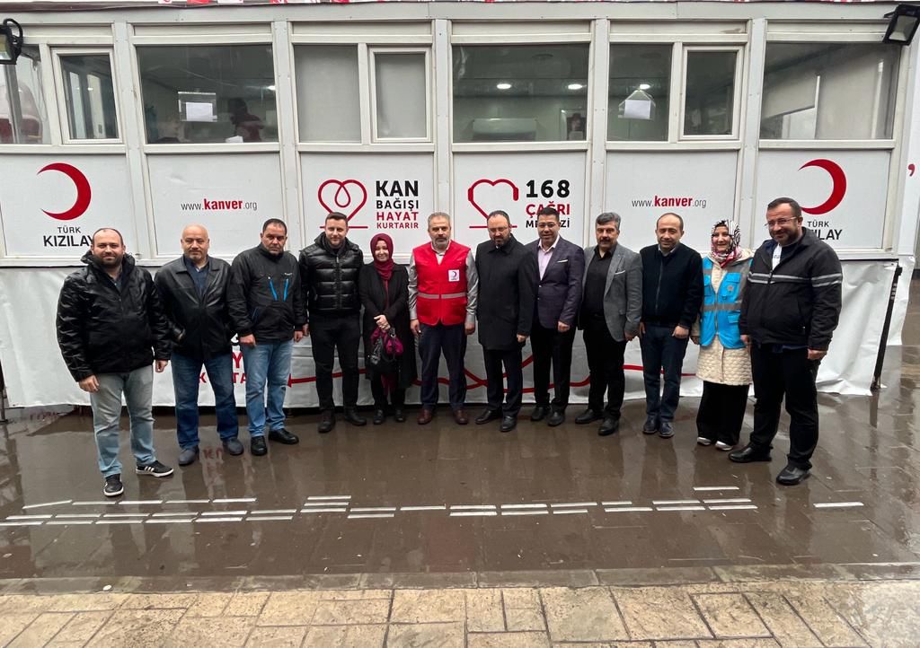 Nevşehir Ak Parti İl Başkanı Ali Kemikkıran ve Milletvekili Adayları Emre Çalışkan ve Av. Mustafa Rauf Yanar ile Ak Parti Yönetim Kurulu üyeleri ve Ak Parti Kadın Kolları Başkanı Elife Çelebi ile Yönetim Kurulu üyeleri Nevşehir Gülbahçe önünde bulunan Kızılay Kan Bağış tırında kan bağışında bulundular.