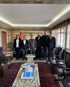 Adalet ve Kalkınma Partisi İlçe Başkanı Doğan Derin ve Yönetim Kurulu Üyeleri ile Milliyetçi Hareket Partisi İlçe Başkanı Mustafa Öz ve Yönetim Kurulu Üyeleri Kaymakam Cüneyt Caner’i makamında ziyaret etti.