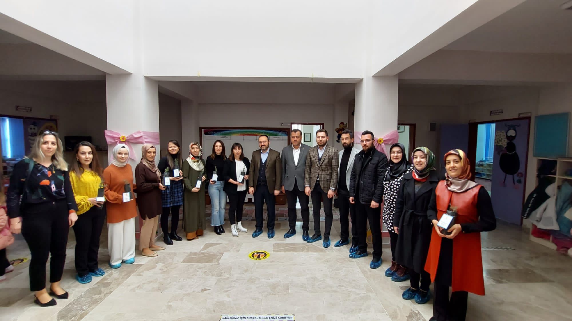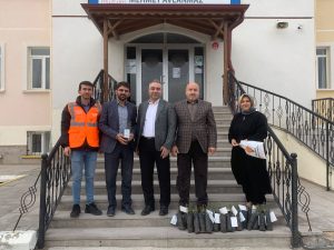 Okullardaki her öğretmene bir adet fidan hediye eden Kemikkıran ve partililer, 2 bin 23 adet fidan hediye etti.