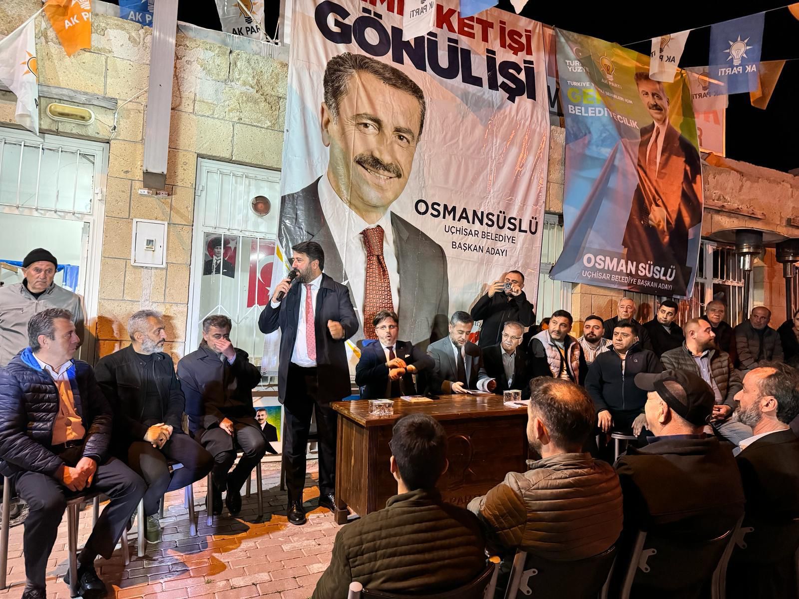 Ak Parti’nin en başarılı belediye başkanları arasında gösterilen Uçhisar Belediye Başkanı Osman Süslü, Ak Parti Nevşehir milletvekilleri ve Sağlık Bakan Yardımcısını ağırladı.