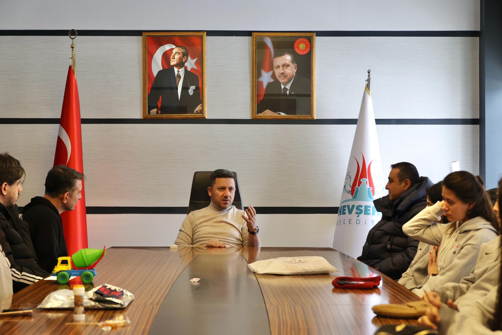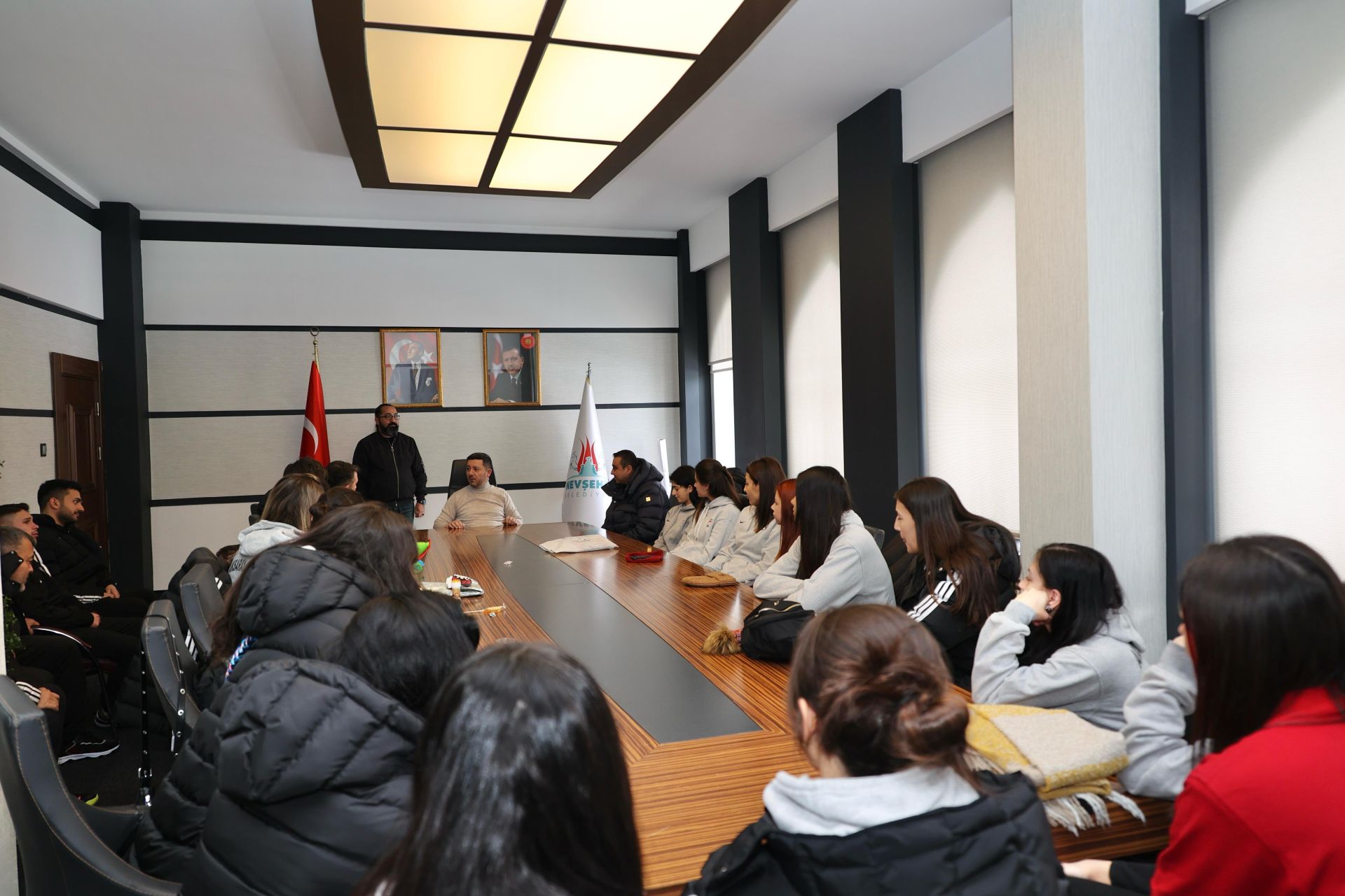 Türkiye Voleybol Federasyonu tarafından düzenlenen TVF Kadınlar 2. Lig Yarı Final müsabakaları için Nevşehir’de bulunan Aksaray 1989 SK Kulübü Başkanı Ferit Gemici ve oyuncular Nevşehir Belediye Başkanı Rasim Arı’yı makamında ziyaret etti.