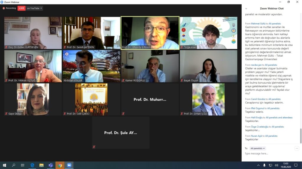 Nevşehir Hacı Bektaş Veli Üniversitesi, Muğla Sıtkı Koçman Üniversitesi, Sinop Üniversitesi ve Doğu Akdeniz Üniversitesinin katkılarıyla 19 Ağustos 2020 Çarşamba günü 10:00-17:30 saatleri arasında çevrimiçi(online) ortamda gerçekleştirilen “Turizm Eğitiminde Kalite ve Akreditasyon” konulu çalıştaya katıldı.
