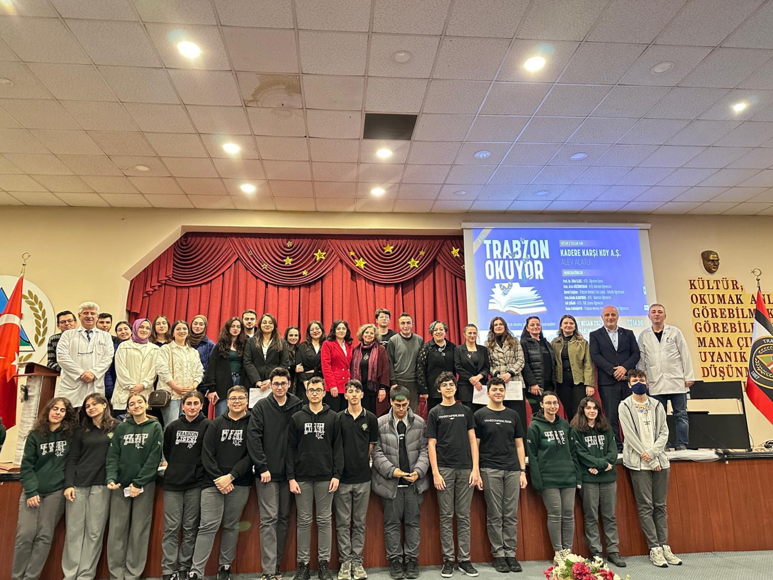 Trabzon Merkez Fen Lisesinin ev sahipliğinde gerçekleştirilen programda, Türk edebiyatının düşünce dünyasına derin katkılar sunan Kapadokya Üniversitesi kurucusu Alev Alatlı’nın “Kadere Karşı Koy A.Ş.” adlı eseri merkeze alındı. Alanında uzman, gönüllü moderatörler eşliğinde gerçekleştirilen ve farklı disiplinlerin bakış açılarını buluşturan etkinlikte, Kadere Karşı Koy A.Ş. romanı; edebi, toplumsal, felsefi ve kültürel açılardan çok boyutlu ele alındı.
