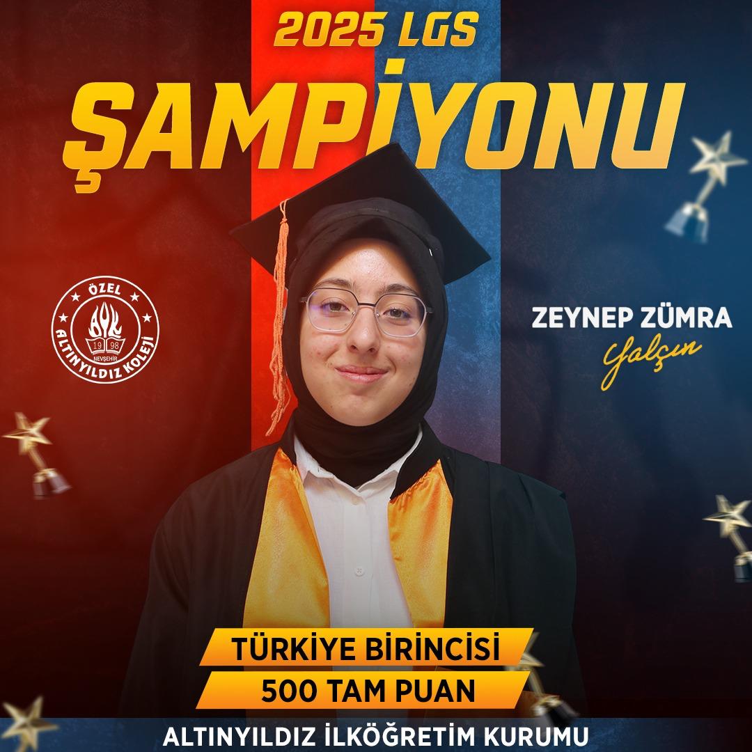 15 Haziran 2025 Pazar günü yapılan Liselere Geçiş Sistemi sınavında Altınyıldız İlköğretim Kurumu öğrencisi ZEYNEP ZÜMRA YALÇIN, resmî sonuçlara göre tüm soruları doğru yaparak Türkiye 1.liği elde etmiştir. Kurum Müdürümüz Sayın AHMET ÜNAL yaptığı açıklamada: