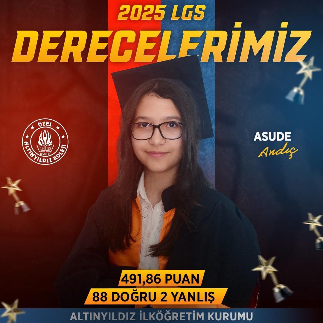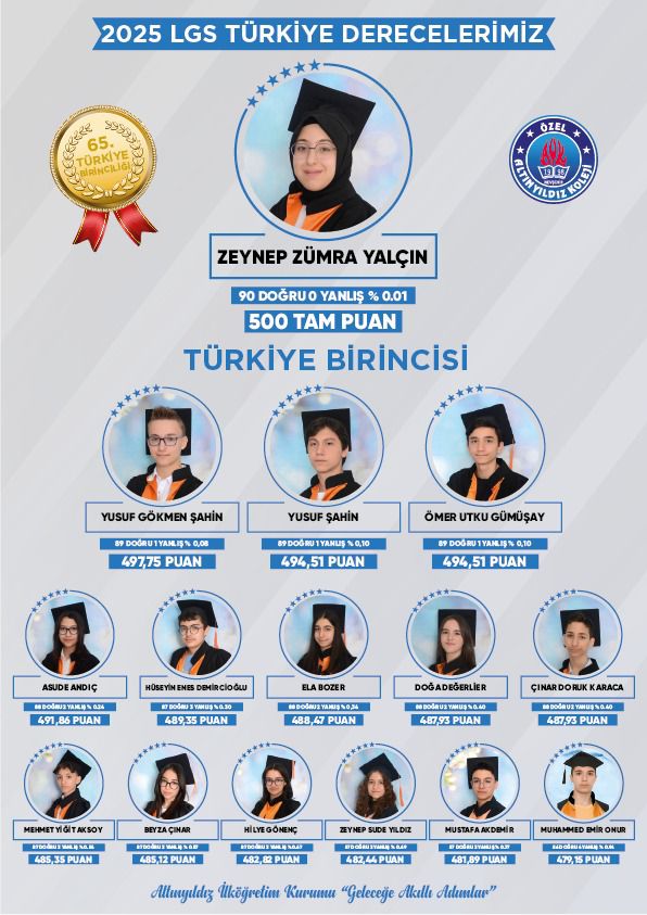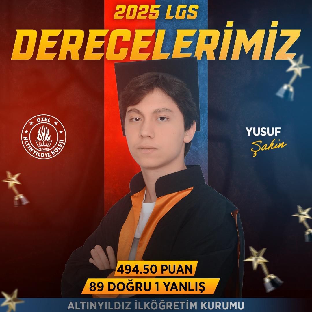 2025 LGS sınavına Altınyıldız İlköğretim öğrencileri damga vurdu. Öğrencilerimiz, hem Nevşehir’in hem de Türkiye’nin gururu olmayı başardı. 15 öğrencimiz %0 ile %1’lik dilim arasında yer alarak büyük bir başarıya imza attı. Bu üstün performans, Altınyıldız’ın disiplinli ve nitelikli eğitim anlayışının bir göstergesidir. Öğrencilerimiz, Türkiye’nin en seçkin ve köklü liselerine yerleşme hakkı kazandı. Altınyıldız ailesi olarak öğrencilerimizin azmiyle, öğretmenlerimizin emeğiyle gurur duyuyoruz. Her yıl olduğu gibi bu yıl da LGS’ye damgamızı vurduk. Başarılarımız, tesadüf değil; sistemli, özverili ve kaliteli eğitimin sonucudur.