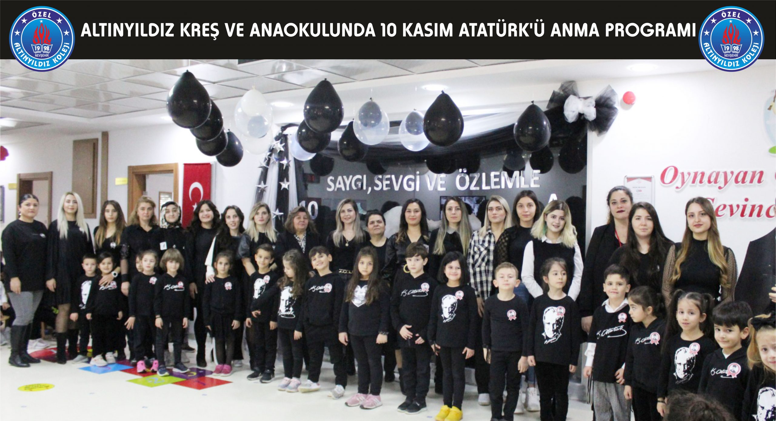 Sevgili öğrencilerimiz tarafından hazırlanan bu anlamlı programda, Atatürk ve tüm şehitlerimiz için saygı duruşunda bulunuldu ve hep birlikte İstiklal Marşı’mız söylendi. Sonrasında öğrencilerimiz Atatürk’le ilgili şarkı ve marşlarını söyleyerek çocuklar tarafından hazırlanmış olan Atatürk sergimiz gezildi. Altınyıldız Kreş ve Anaokulunun sevgili öğrencileri her yıl olduğu gibi, bu yılda Atatürk’e ve onun “en büyük eserim” dediği Türkiye Cumhuriyeti’ne sevgi ve bağlılıklarını en güzel şekilde ifade ettiler.