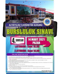 Altınyıldız İlköğretim Kurumuna Giriş ve Bursluluk sınavları 13-14 Mart 2021 tarihlerinde yapılacak. Dereceye giren öğrenciler Altınyıldız İlköğretim Kurumunda ücretsiz öğrenim görme hakkı kazanacak.