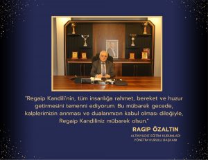 Altınyıldız Eğitim Kurumları Yönetim Kurulu Başkanı Ragıp ÖZALTIN’dan Regaip Kandili Mesajı;