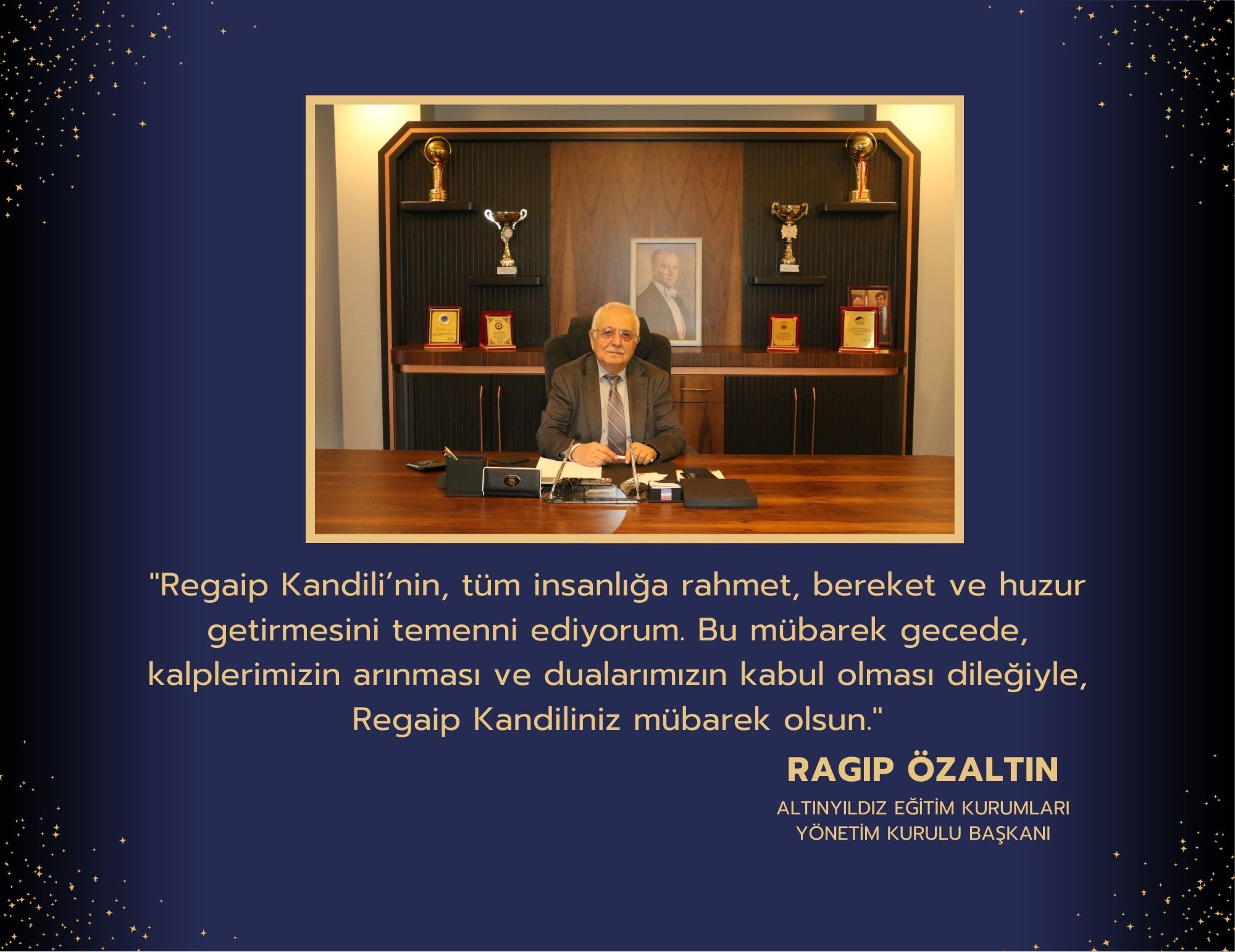 Altınyıldız Eğitim Kurumları Yönetim Kurulu Başkanı Ragıp ÖZALTIN’dan Regaip Kandili Mesajı