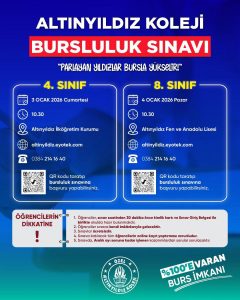 Bursluluk sınavı başvuruları 1 Aralık 2025 Pazartesi günü (bugün) başladı. Öğrenciler ve veliler başvurularını altinyildiz.eyotek.com adresinden veya afişte yer alan QR kodu okutarak kolayca gerçekleştirebileceklerdir.