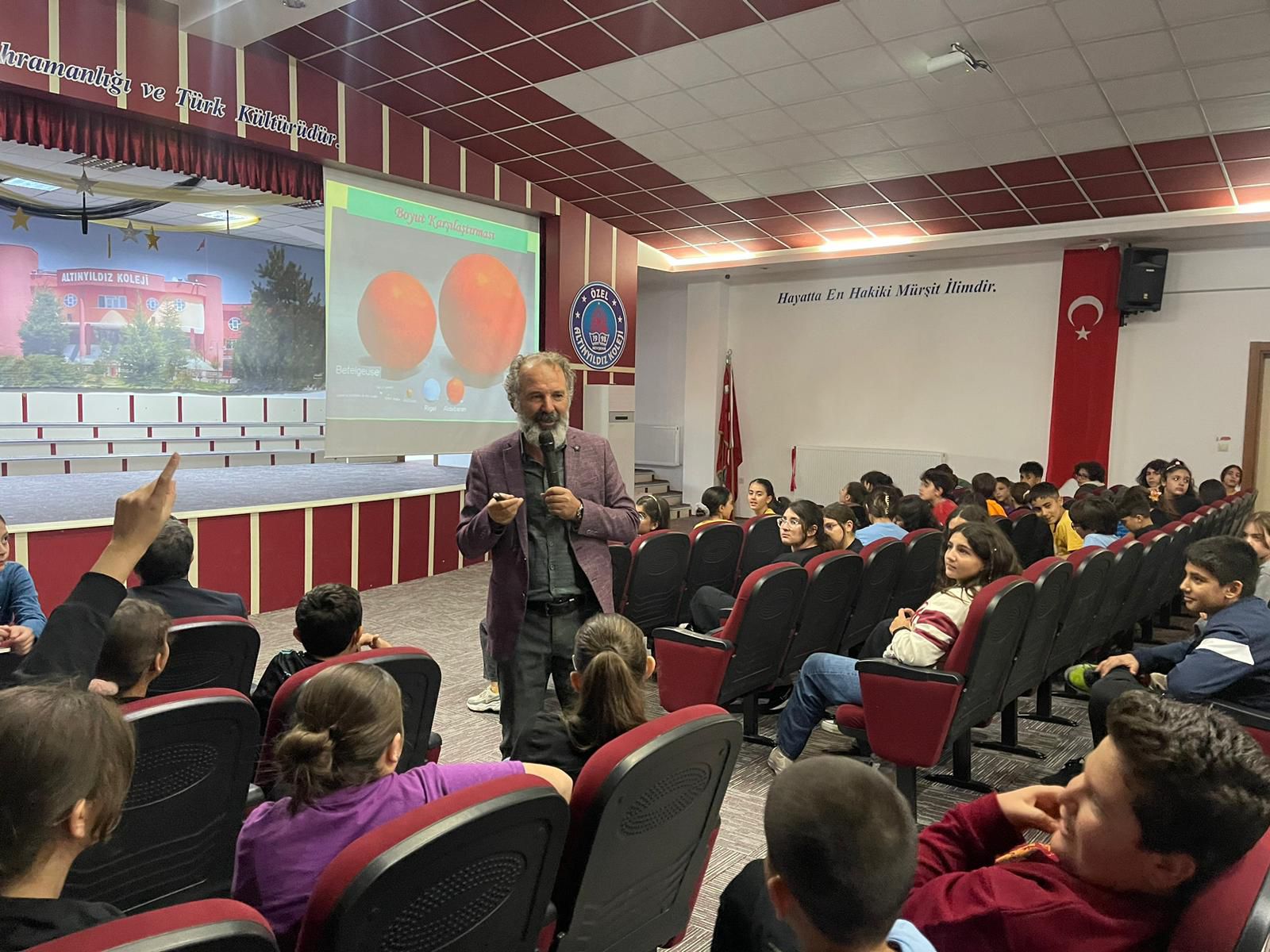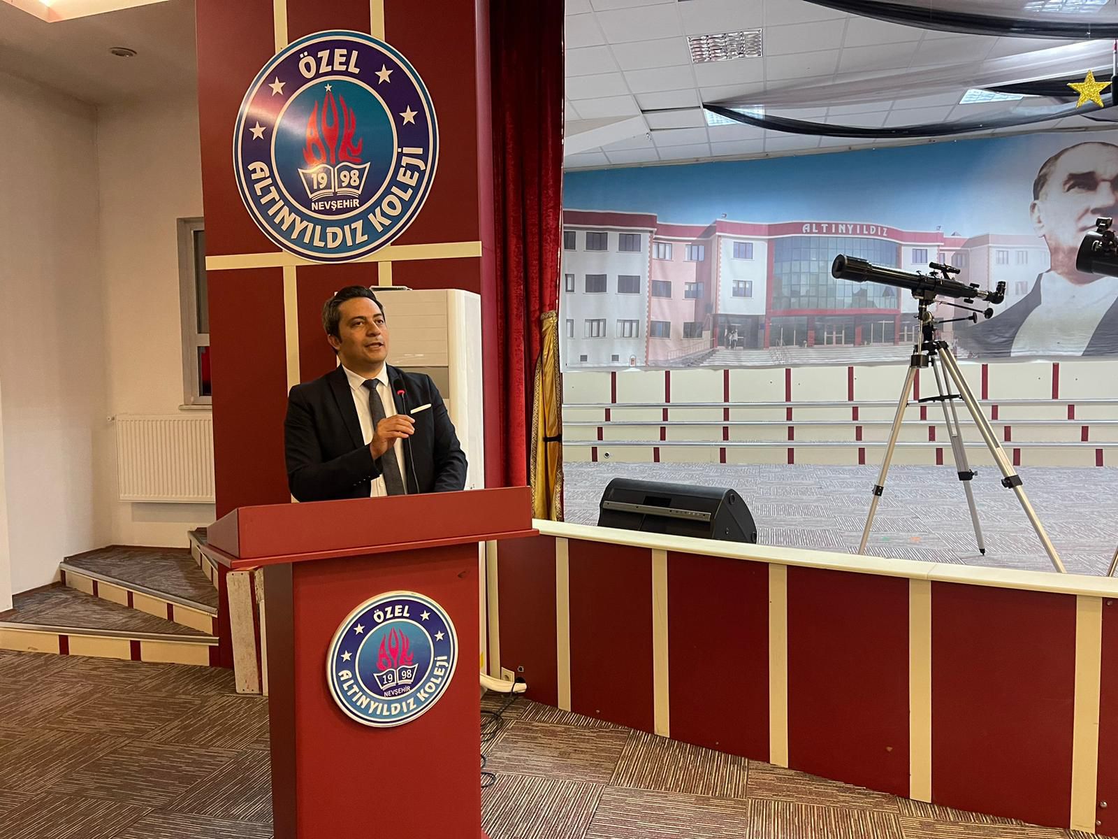 Gökyüzü Gözlem Şenliği kapsamında okulumuzda Nevşehir Hacı Bektaş Veli Üniversitesi öğretim üyesi Prof. Dr. Ali Meydan öğrencilerimize yönelik keyifli ve öğretici bir seminer verdi.