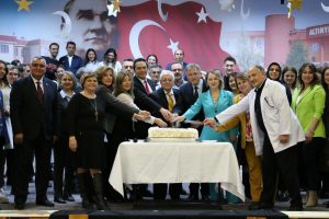 Geleneksel 24 Kasım Öğretmenler Günü pastasının kesilmesi ve hediye takdimi törenine ise Altınyıldız Eğitim Kurumları Yönetim Kurulu Başkanı Ragıp Özaltın, Yönetim Kurulu Başkan Yardımcısı Fevzi Karaca, Yönetim Kurulu Başkan Vekili Emre Özaltın, Genel Müdür Seyrani İpek ile Kreş Müdürü Hande Özaltın, Anaokulu Müdürü Emine Gönen, İlköğretim Kurumu Müdürü Ahmet Ünal, Fen ve Anadolu Lisesi Müdürü Özkan Kılınç, müdür yardımcıları ve öğretmenler katıldı. Törende bir konuşma yapan Yönetim Kurulu Başkanı Ragıp Özaltın, Geleceğimizin teminatı çocuklarımızı bilgiyle, sevgiyle ve sabırla yetiştiren tüm öğretmenlerimizin 24 Kasım Öğretmenler Günü’nü içtenlikle kutluyorum, dedi.