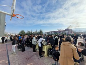 Sıcak çikolata ve salep ikramı yapılan keyifli buluşmada, öğrenciler hem sohbet etme fırsatı buldu hem de soğuk havada içlerini ısıtan lezzetlerle buluştu.