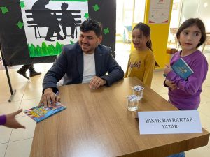 Etkinliğin sonunda öğrenciler, Yaşar Bayraktar’a kitaplarını imzalattı. Neşeli ve öğretici anlara sahne olan bu buluşma, öğrencilerimizin edebiyata olan ilgisini bir kez daha pekiştirdi.