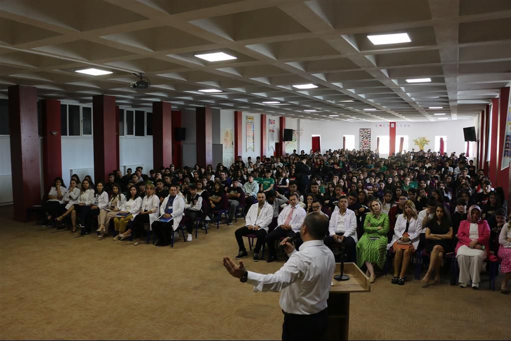 Çağ, bilim çağıdır; eğitimin alanı her geçen gün genişlemekte, eğitimin seviyesi her geçen gün yükselmektedir. Bu günkü sistem, yeni müfredat ve programlar hedeflerimiz için düzenli, planlı ve akılcı çalışmayı zorunlu kılmaktadır. Bizler yönetici ve öğretmenler olarak öğrencilerimizin bilişsel yeteneklerini geliştirmek ve yapabileceklerini keşfetmek adına yeni eğitim sistemlerini sürekli araştırıyor ve uygun gördüklerimizi uyguluyoruz. Öğrencilerimizin okul imkânlarını maksimum düzeyde değerlendirmelerini, eğitim kadromuzun deneyimlerinden en iyi şekilde yararlanmalarını istiyoruz. Bunları yaparken de bir plan ve disiplin içinde yapmalarını sağlamak için çaba sarf ediyoruz. Hedefleriniz, amaçlarınız çok büyük olmalıdır. Şunu bilmenizi isteriz ki sorunlarınızın çözümünde her zaman yanınızdayız. Sözlerimi burada bitirirken yeni öğretim yılının tüm eğitim camiasına hayırlı olmasını dilerim.” dedi.