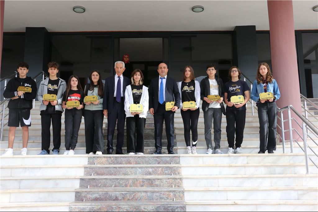 2023 Öğretim yılı 9. Sınıflarımızdan LGS sınavlarında en yüksek puanları alan şampiyon öğrencilerimize ödüllerini, Yönetim Kurulu Üyesi Sayın Fevzi KARACA ve Fen ve Anadolu Lisesi Müdürü Özkan KILINÇ takdim ederek başarılar dilemiştir.
