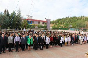 Cumhuriyetimizin kurucusu ulu önder Gazi Mustafa Kemal Atatürk ve şehitlerimizin manevi huzurunda saygı duruşu yapılarak İstiklâl Marşı’mız büyük bir coşkuyla söylendi.