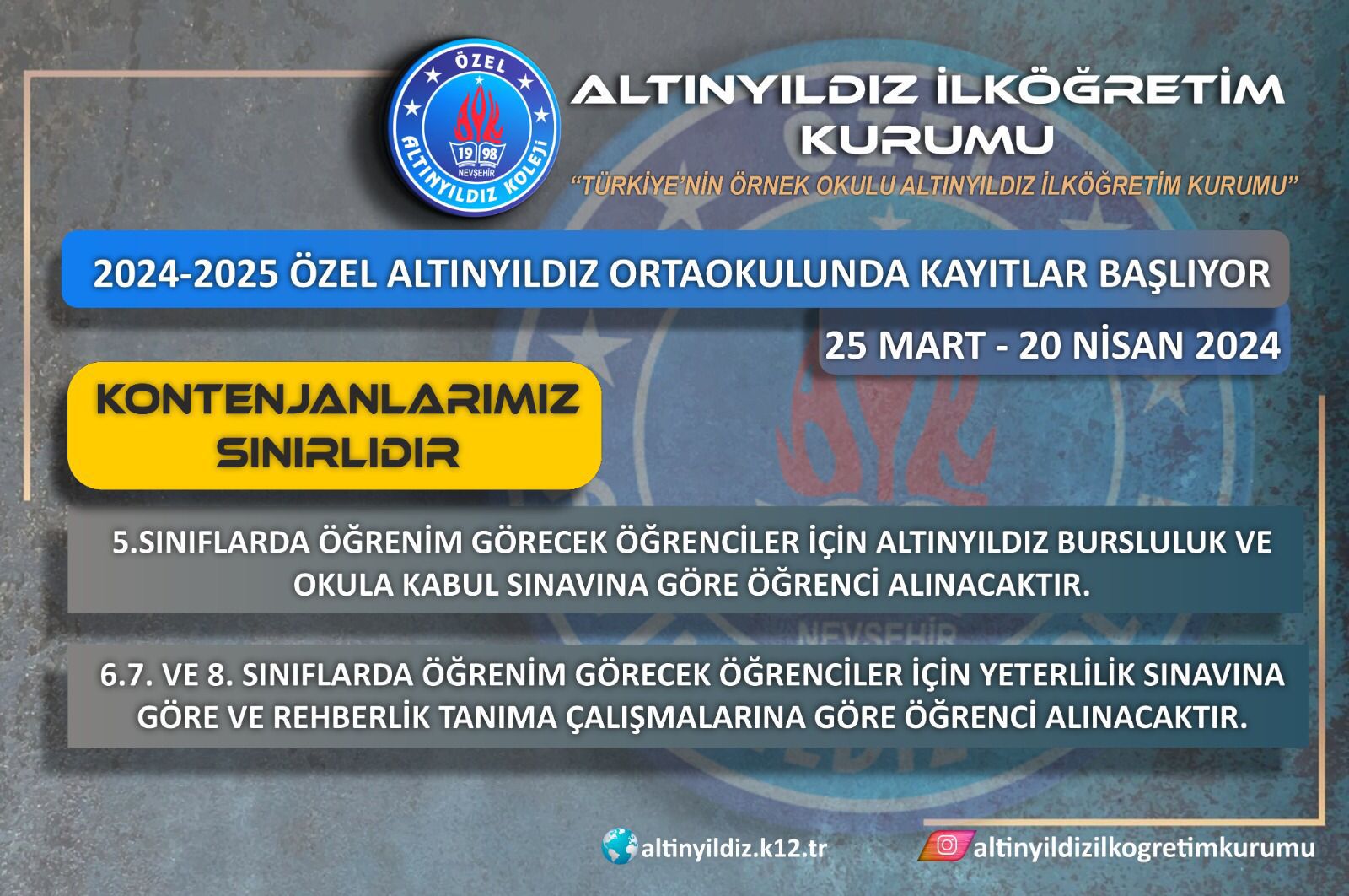 2024 – 2025 ÖZEL ALTINYILDIZ ORTAOKULUNDA KAYITLAR BAŞLIYOR