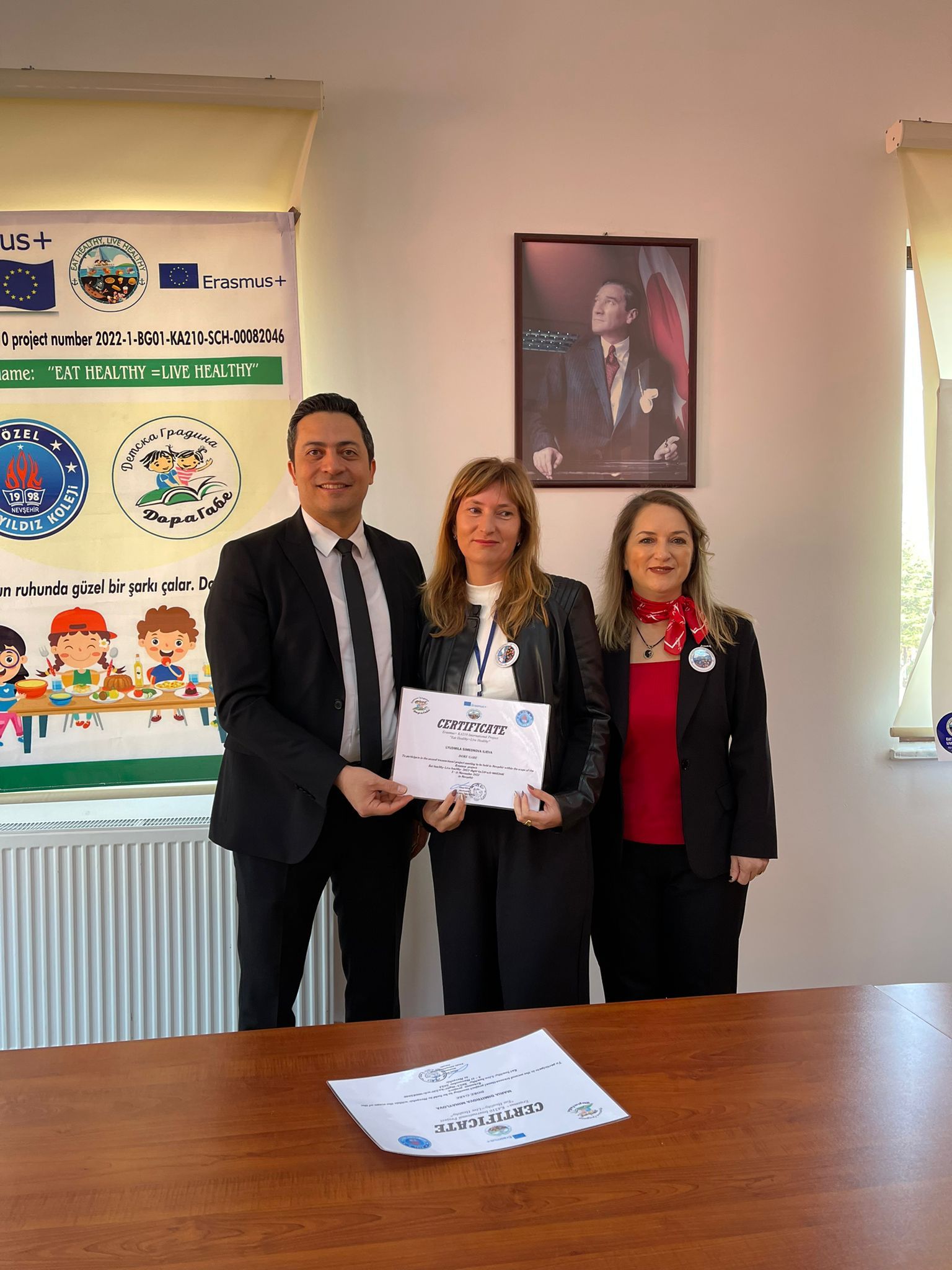 Ziyaretlerinin son gününde İlköğretim Kurum Müdürü Ahmet Ünal ‘ın katılımıyla her proje öğretmenine tek tek sertifika takdimi gerçekleştirilmiştir. Kurum Müdürümüz Ahmet Ünal yaptığı açıklamada Projelere devam edileceğinin altını çizerek, misafirlerine ev sahipliği yapmaktan mutluluk duyduğunu dile getirmiştir. Erasmus projelerinin farklı kültürleri tanımamıza vesile olduğu gibi eğitime de büyük katkı sağladığını ifade ederek projede yer alan tüm öğretmenlere teşekkürlerini iletti.