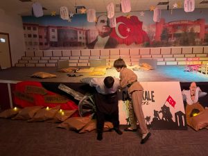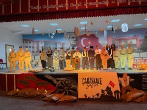 Çanakkale’de büyük imkânsızlıklar içinde verilen bu çetin mücadele, milletimizin bağımsızlığı için gerektiğinde neler yapabileceği öğrencilerimiz ve öğretmenlerimiz tarafından yapılan sunumlarla gösterilmiştir.