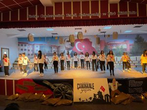 Çanakkale Zaferinin 110. Yılı kutlama programı Gazi Mustafa Kemal Atatürk ve tüm aziz şehitlerimiz için saygı duruşu ve İstiklal Marşımızın okunmasıyla başladı. Günün anlam ve önemini belirten konuşmanın ardından istiklal marşı, zeybek gösterisi, tiyatro, oratoryo ve video gösterimi koro eşliğinde türkülerle sona ermiştir.