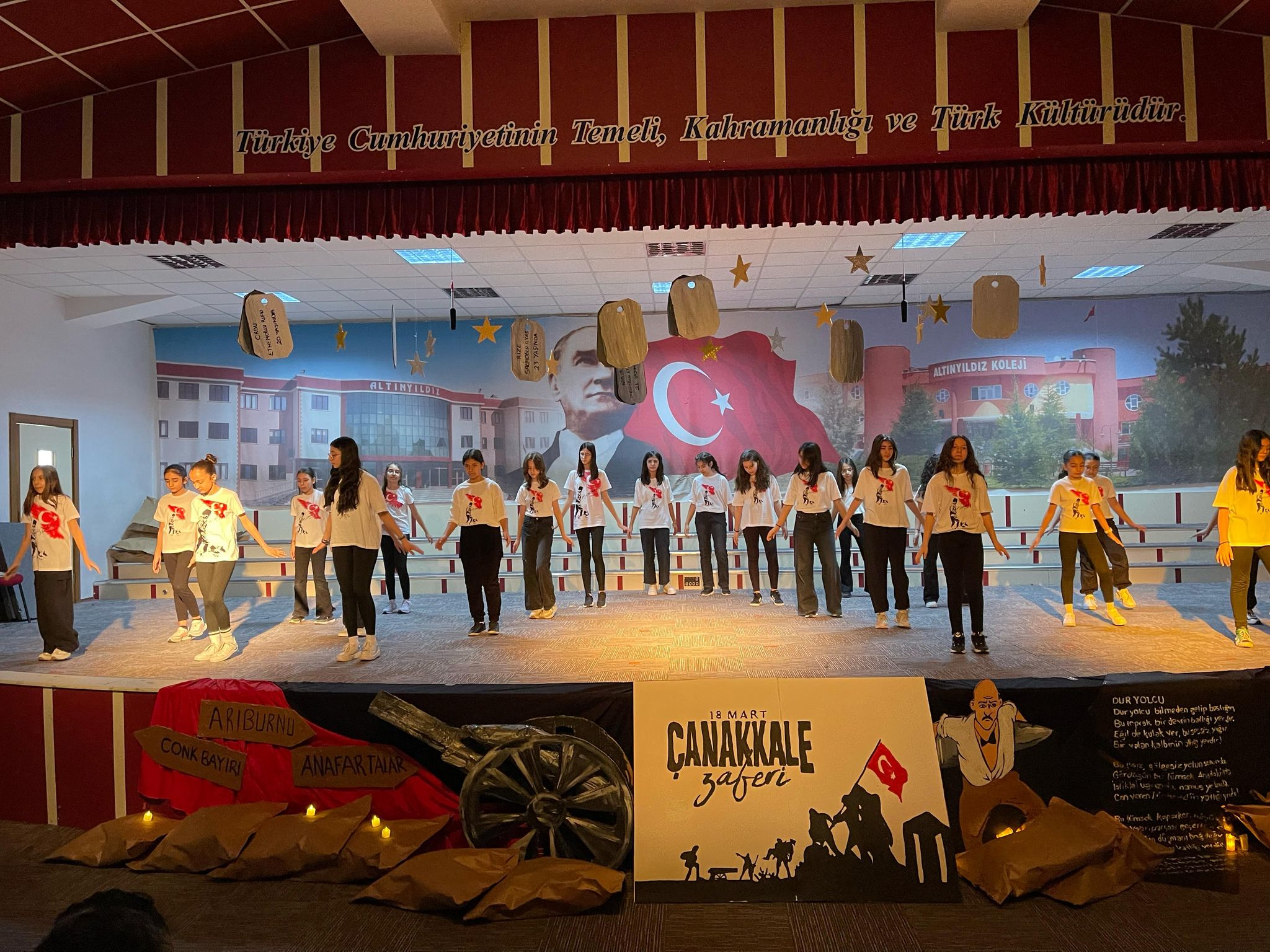 Altınyıldız İlköğretim Kurumunda Çanakkale Zaferinin 110. Yıldönümü münasebetiyle Ortaokul öğrencilerinin düzenlediği programda Türk Milleti’nin kahramanlığının destanlaştığı, Çanakkale Savaşlarının Türk Tarihinin dönüm noktalarından biri olduğu vurgulandı.