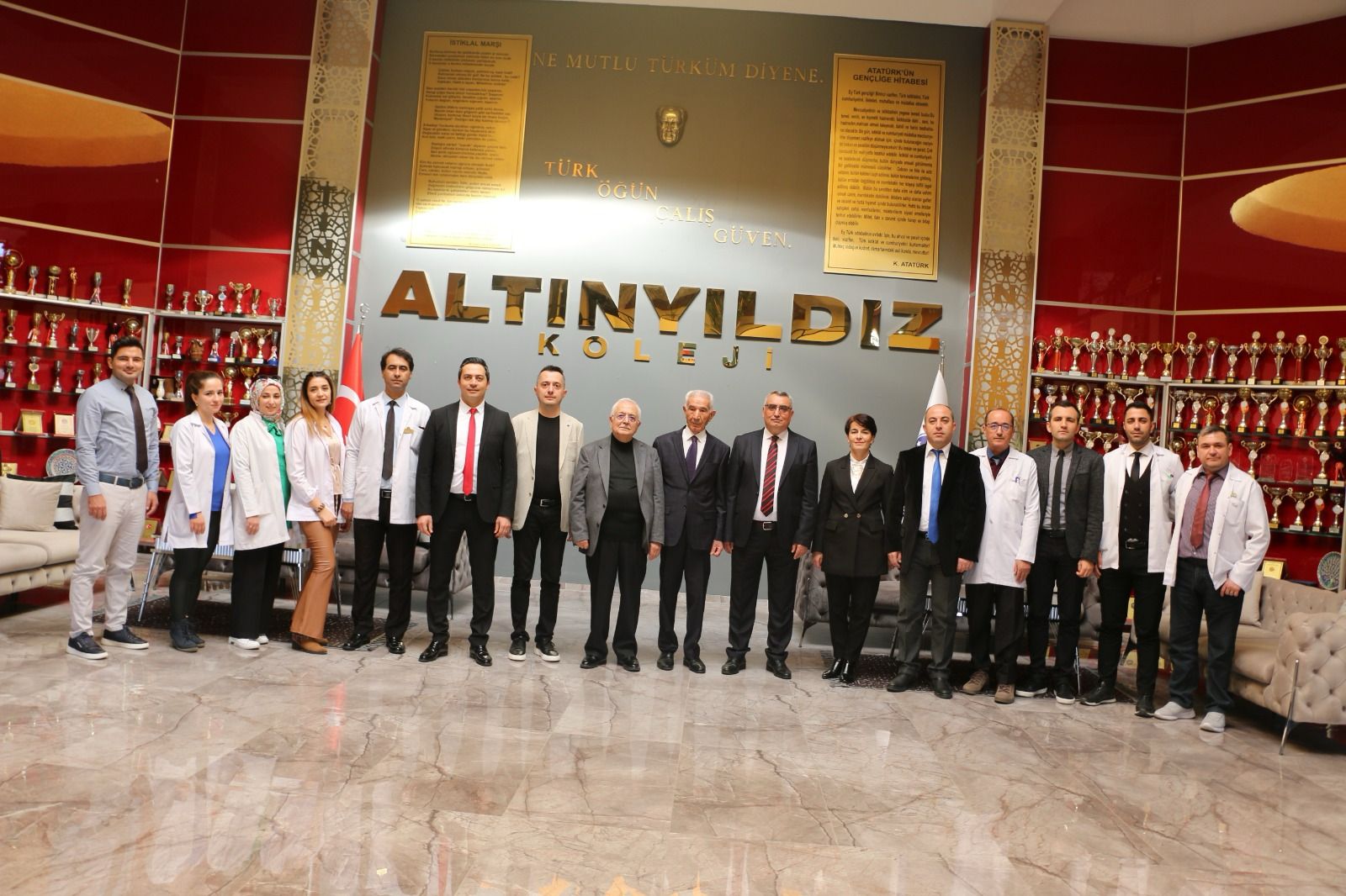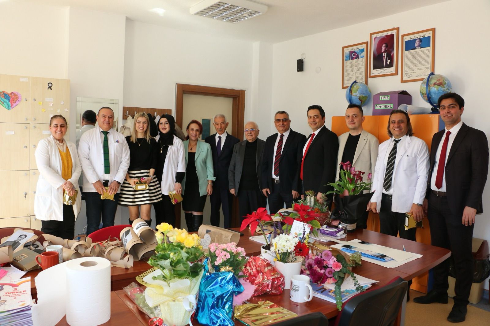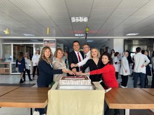 Altınyıldız Koleji Yönetim Kurulu Başkanı Sayın Ragıp ÖZALTIN, Yönetim Kurulu Başkan Vekili Emre ÖZALTIN, Yönetim Kurulu Başkan Yardımcısı Fevzi KARACA, Genel Müdür Seyrani İPEK, İlköğretim Kurum Müdürü Ahmet ÜNAL öğretmenlerimizin Öğretmenler Günü’nü kutlayarak kıymetli öğretmenlerimize hediyelerini takdim ettiler. Ardından öğretmenlerimizle birlikte pasta kestiler.