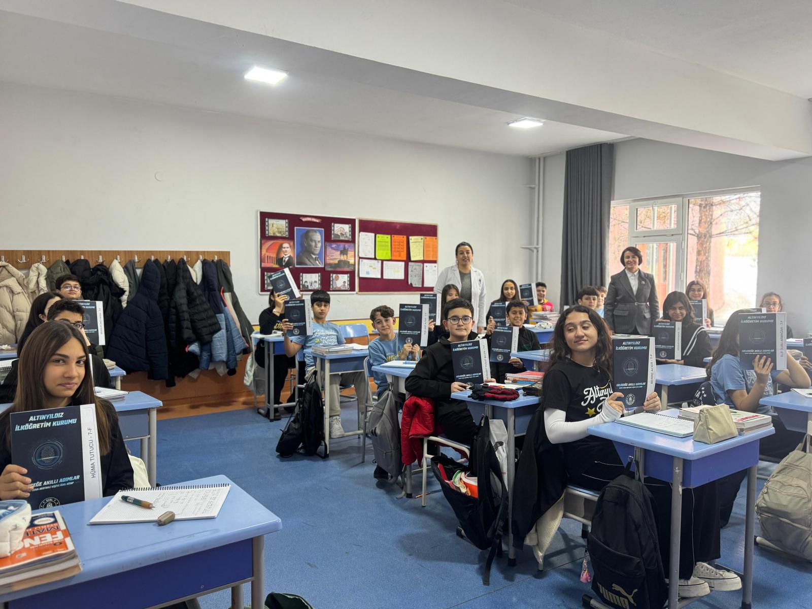 Altınyıldız İlköğretim Kurumunda 5, 6, 7 ve 8. sınıf öğrencilerinin tamamına yönelik olarak, öğrencilerin son 4 aylık süreçte girdikleri sınavlarda tespit edilen eksikliklerine göre kişiye özel kitaplar hazırlandı.