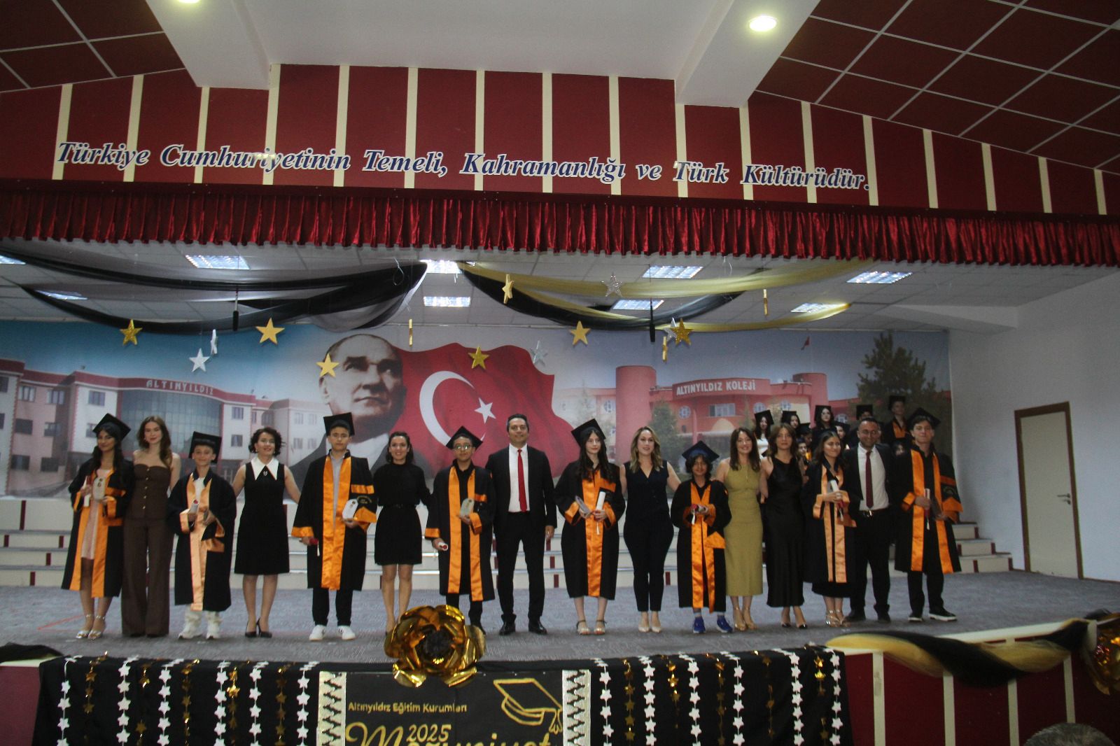 LGS’de yalnızca bir yanlış yapan Yusuf Gökmen Şahin, Ömer Utku Gümüşay ve Yusuf Şahin de üstün başarılarından dolayı ödüllendirilerek sahnede tebrik edildi. Bu öğrenciler, örnek disiplinleri ve azimleriyle takdir toplarken, başarılarıyla Altınyıldız’ın eğitimdeki liderliğini bir kez daha kanıtladı. Mezuniyet töreni, velilerin yoğun katılımı ve öğrencilerin heyecan dolu anlarıyla renkli görüntülere sahne oldu.