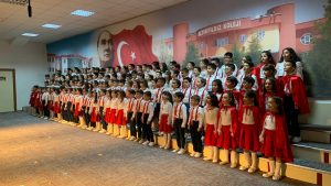 Programımız Cumhuriyetimizin kurucusu Ulu Önder Mustafa Kemal Atatürk’ün ve İstiklal Savaşımızın tüm kahramanlarının manevi huzurunda saygı duruşu ve İstiklal Marşımızın okunması ile başladı. Öğrencilerimiz 2. Sınıf zümre öğretmenlerinin hazırladıkları şiirleri, koro, gösteri ve dansları sundular.