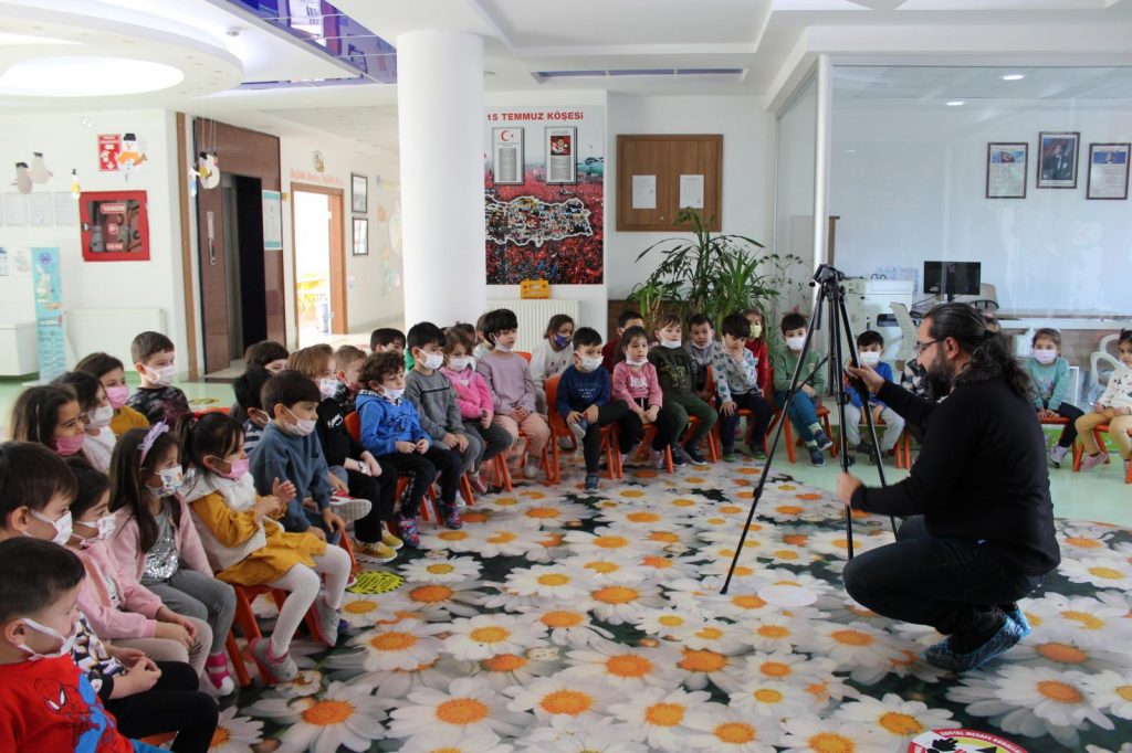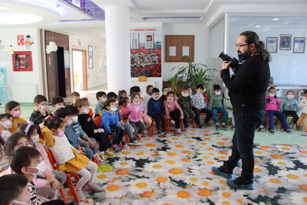 Çocuklarımıza gazetecilik mesleğini anlatan Sayın Tolga Karaca kullandıkları araçları tanıtarak, röportaj yapmayı, fotoğraf çekmeyi ve haber yapmayı anlattı.