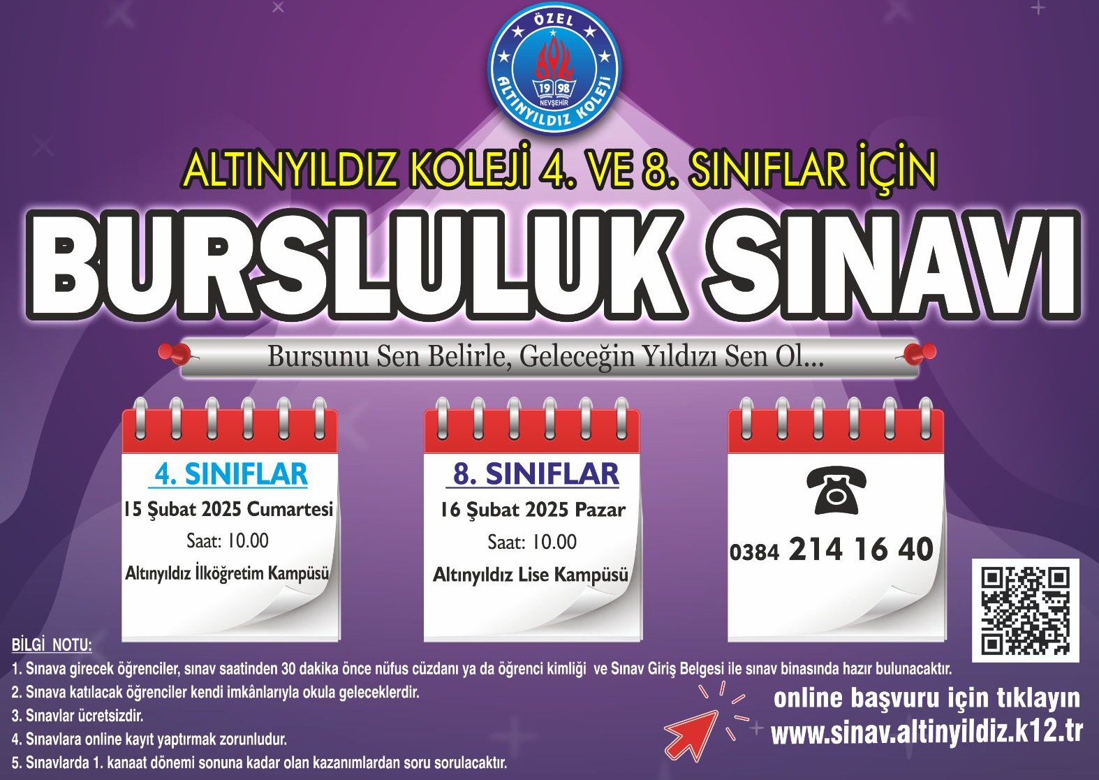 Online başvuru adresi: www.sinav.altinyildiz.k12.tr