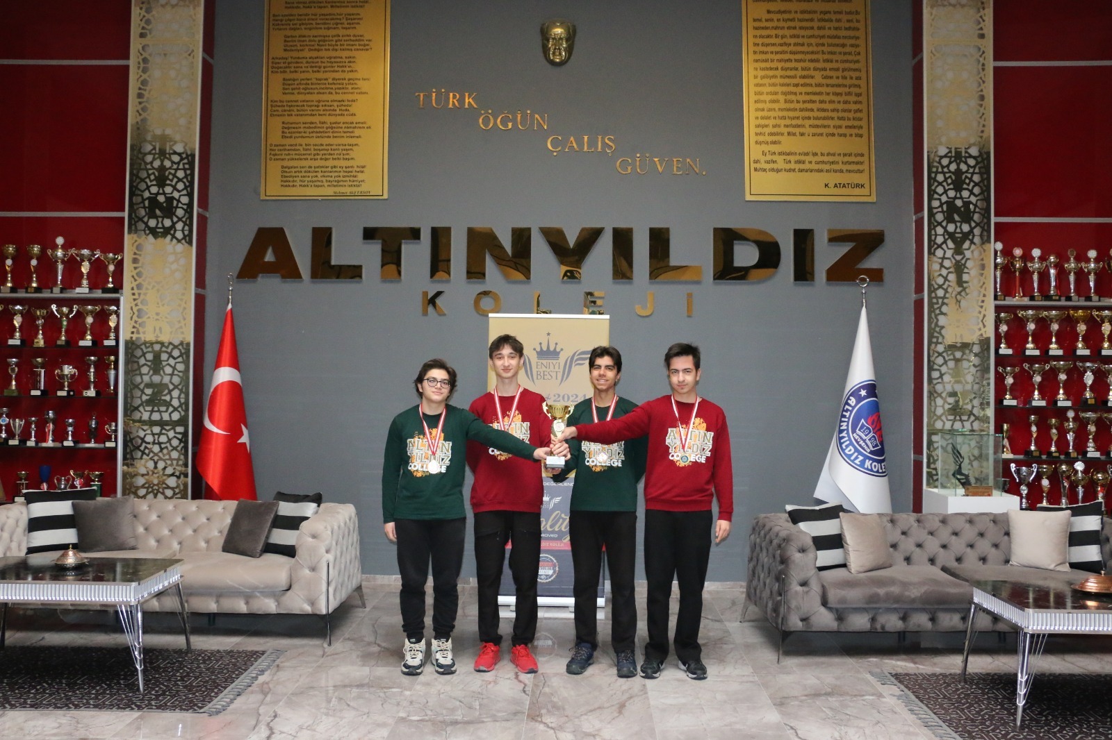 Kurum Müdürlüğü tarafından “Altınyıldız Koleji 11. Sınıf Fen Lisesi öğrencisi Onur Şükrü Günaydın, 10. Sınıf Fen Lisesi öğrencisi Berkay Nuray, 10. Sınıf Fen Lisesi öğrencisi Muhammed Berkin Şimşek, 10. Sınıf Fen Lisesi öğrencisi Onur Erdem Üstündağ’ı ve onları yetiştiren Satranç Öğretmeni Nilgün Nuray’ı tebrik eder, başarılarının devamını dileriz” açıklaması yapıldı.