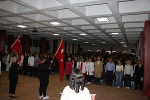 “Bin bir zorluk ve mücadele ile yoktan var edilen bir milletin tekrar dirilişinin, sonsuza dek yaşatmaya söz verdiğimiz Cumhuriyetimizin kuruluşunun 100. Yıl dönümü kutlamalarına hepiniz hoş geldiniz. Ülkemizin düşman istilasından kurtarılıp Cumhuriyetimizin kurulması için eşsiz bir mücadele örneği gösteren, başta Cumhuriyetimizin kurucusu ve ilk cumhurbaşkanı olan Mustafa Kemal Atatürk olmak üzere, bütün gazi ve şehitlerimizi saygıyla anıyorum. Okul müdürümüz öğrencilere hitaben Mustafa Kemal Atatürk’ün dediği gibi, “Cumhuriyeti biz kurduk, onu koruyacak ve yüceltecek olan sizlersiniz ve bir gün sözlerim bilimle ters düşerse, bilimi seçiniz” sözlerini hatırlatarak öğrencilere bilimin ışığında yürümelerini nice 100 yıllara.” diyerek konuşmasına son verdi.