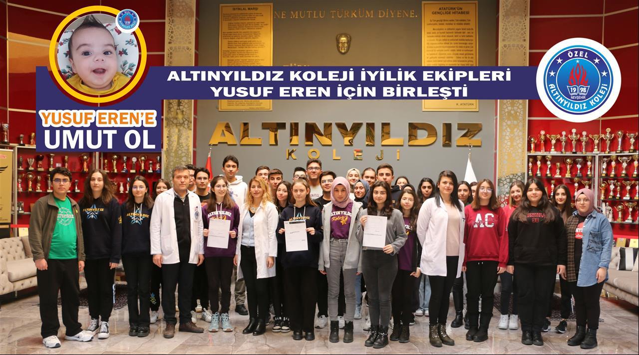 Altınyıldız Koleji Fen ve Anadolu Lisesi 9,10 ve 11. Sınıf öğrencilerimizden oluşan iyilik Ekipleri SMA Tip1 Kas Hastalığı ile mücadele eden Yusuf Eren için okulumuzda kermes düzenlediler.