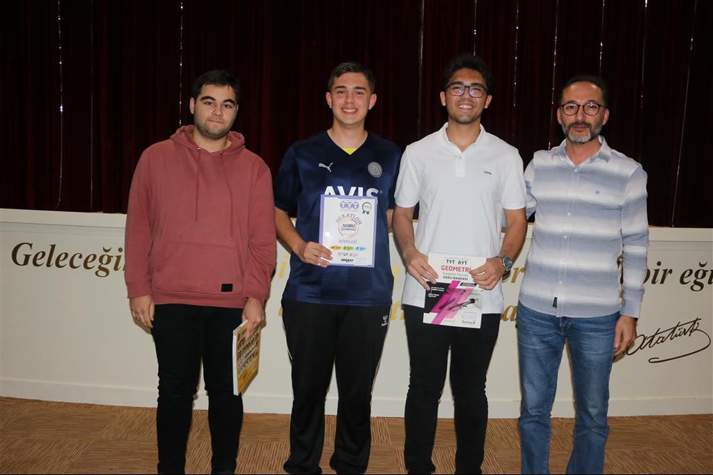 12. sınıflarda TYT ve AYT deneme sınavları sonucuna göre her sınıftan ilk üç öğrenciye ödül verildi. Konuyla ilgili açıklama yapan Altınyıldız Koleji Fen ve Anadolu Lisesi Müdürü Özkan KILINÇ,