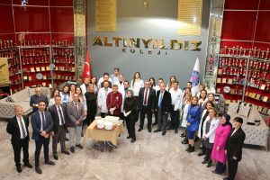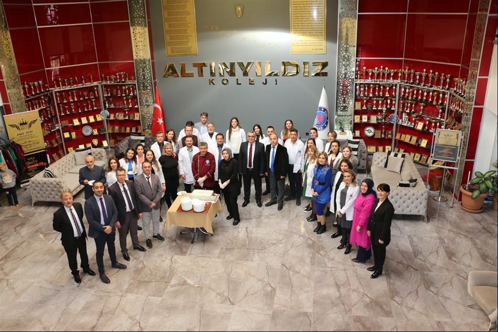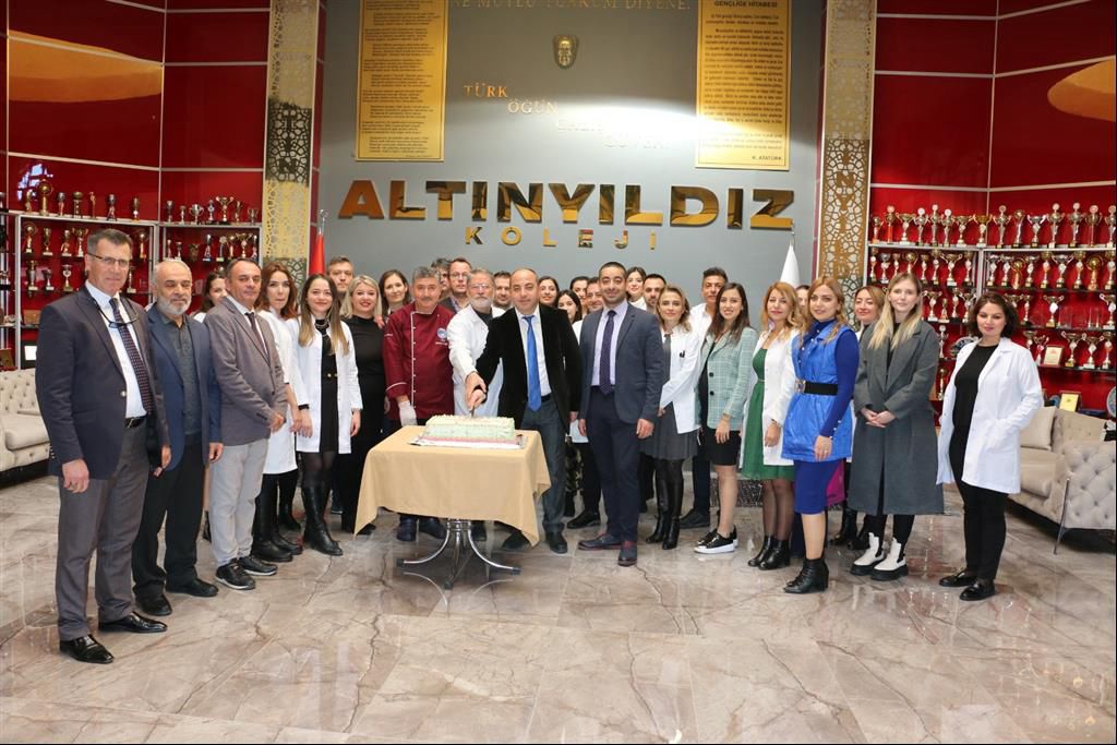 Nevşehir’in eğitimde çeyrek asırlık çınarı Altınyıldız Koleji Fen ve Anadolu Lisesinde 24 Kasım Öğretmenler Günü çeşitli etkinliklerle kutlandı. Altınyıldız Koleji Yönetim Kurulu Başkanı Sayın Ragıp ÖZALTIN, Yönetim Kurulu Başkan Vekili Emre ÖZALTIN, Yönetim Kurulu Başkan Yardımcısı Fevzi KARACA, Genel Müdür Seyrani İPEK, Fen ve Anadolu Lisesi Müdürü Özkan KILINÇ öğretmenlerimizin Öğretmenler Günü’nü kutlayarak kıymetli öğretmenlerimize hediyelerini takdim ettiler. Ardından günün anlam ve önemine binaen öğretmenlerimizle birlikte pasta kestiler.