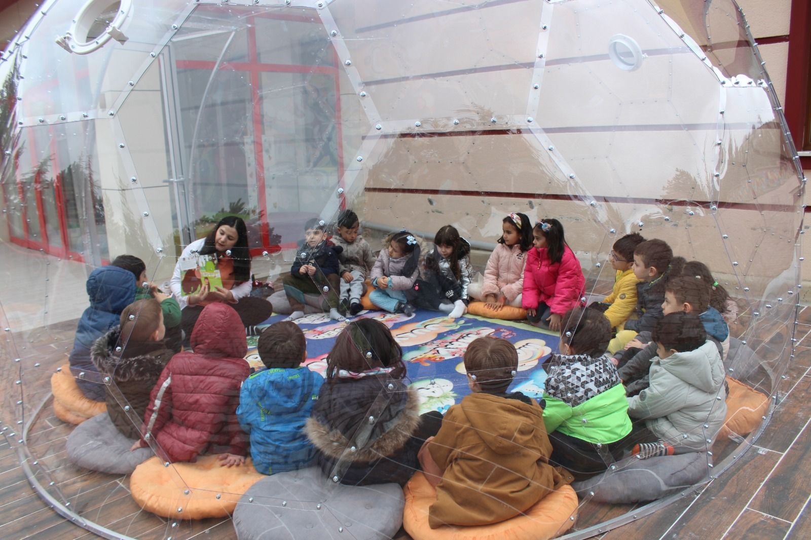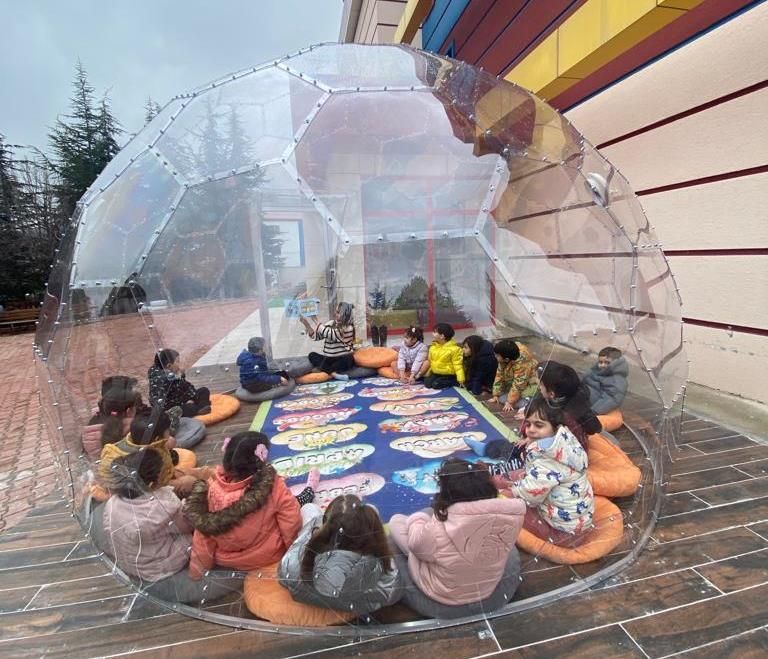Okul bahçemize konumlandırılan balon evde yıl boyunca Stem – Fen ve Doğa, İngilizce, Hikaye okuma, Drama gibi pek çok branş dersleri yapılması planlanmaktadır. Açılışı çocuklarımız eşliğinde gerçekleştirilen balon evimizde ilk etkinlik olarak “Story Time” yapılmıştır.