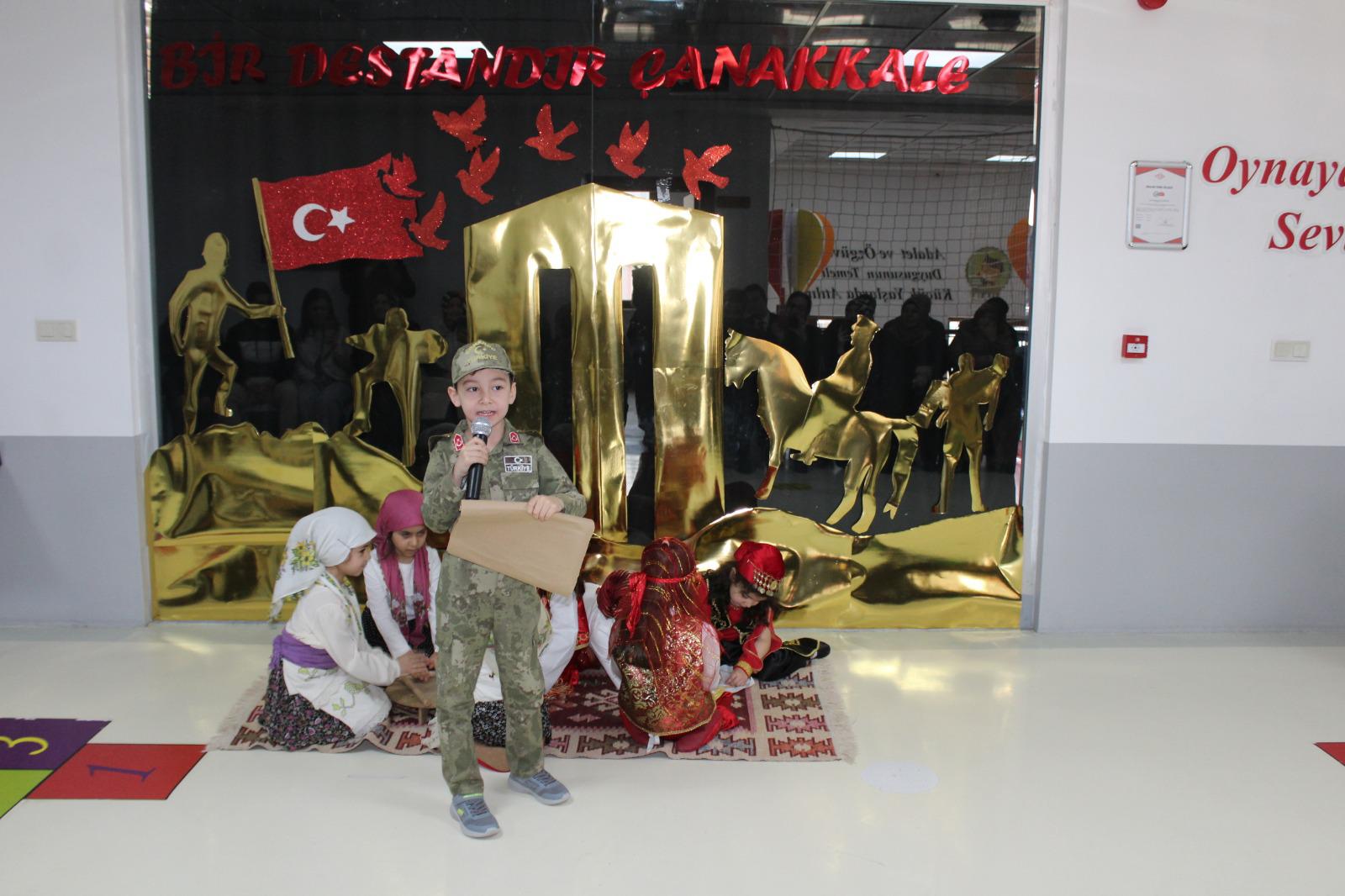Öğrenciler tarafından günün anlam ve önemi ile ilgili sözler okundu. Çanakkale Zaferi ile ilgili şiirler, oratoryo ve drama gösterisi ile devam eden program sonunda öğrenciler hep birlikte ”Çanakkale Türküsünü” söyleyerek programa veda ettiler. Sunulan programda duygu dolu anlar yaşandı. Çanakkale Zaferi’nin nasıl kazanıldığını, bu topraklar için nelerin feda edildiğini, sadece topla tüfekle savaşarak değil inanç ve iman gücü, milli birlik ve beraberlik ile nelerin yapılabileceğini bir kere daha hatırlamış olduk.
