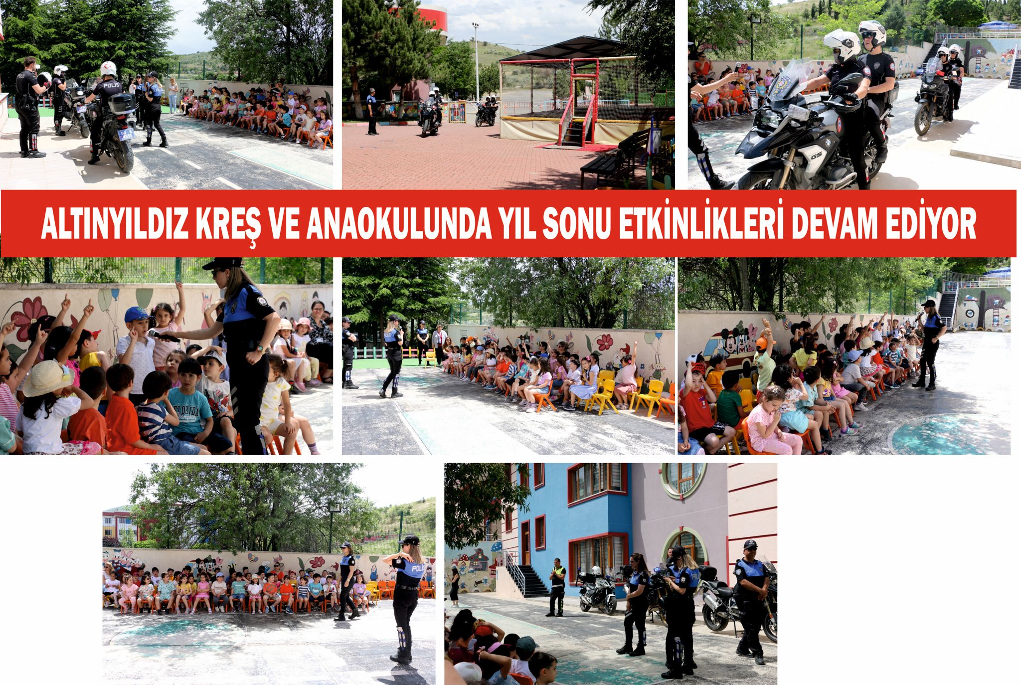 Altınyıldız Kreş ve Anaokulu’nu ziyaret eden polis memurlarımız, trafik kurallarına duyarlı ve bu kuralların uygulamaya geçirilmesinde bilinçli yeni nesiller yetiştirmek adına öğrencilerimize trafik eğitimi verdiler.