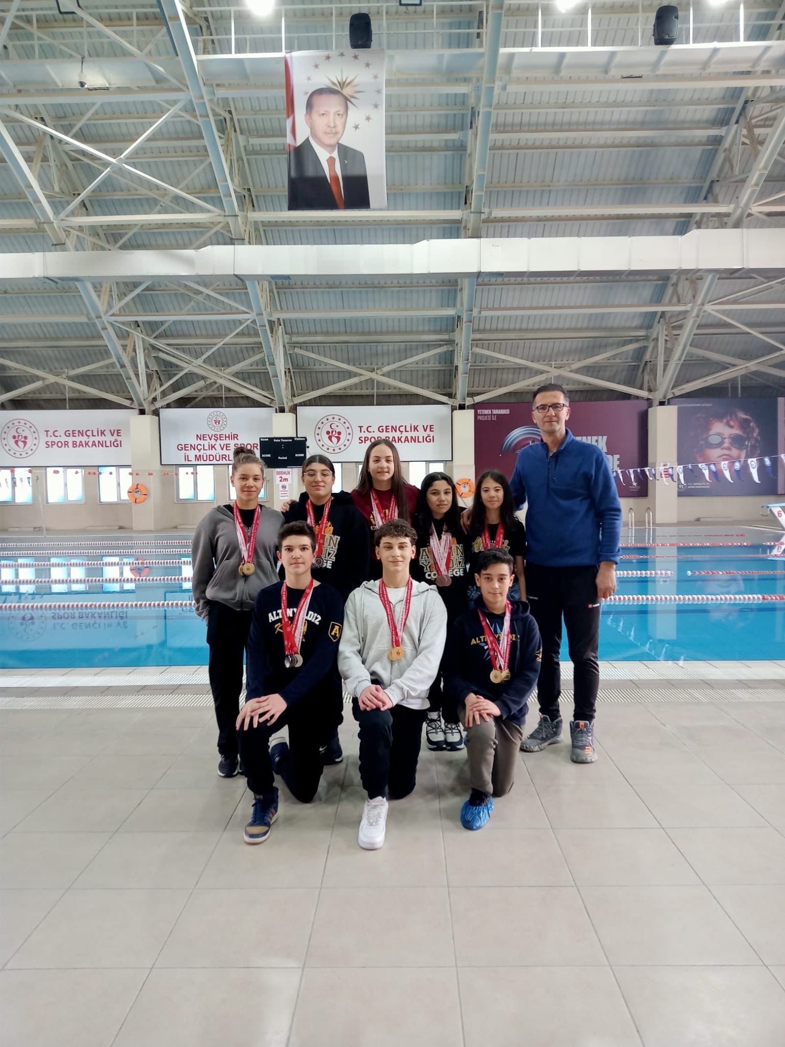 Nevşehir Gençlik hizmetleri Spor il müdürlüğünün düzenlemiş olduğu Okullar arası Yıldızlar küçükler ve minikler il Birinciliği müsabakaları sonucunda Özel Altınyıldız İlköğretim Kurumu yüzme Takımlarımız girmiş oldukları yarışmalarda rekor düzeyde madalya kazanarak bizleri gururlandırmışlardır.
