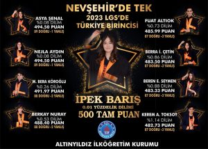 4 Haziran 2023 Pazar günü yapılan Liselere Geçiş Sistemi sınavında Altınyıldız İlköğretim Kurumu öğrencisi İPEK BARIŞ, resmî sonuçlara göre tüm soruları doğru yaparak Türkiye 1.liği elde etmiştir. Kurum Müdürümüz Sayın AHMET ÜNAL yaptığı açıklamada: