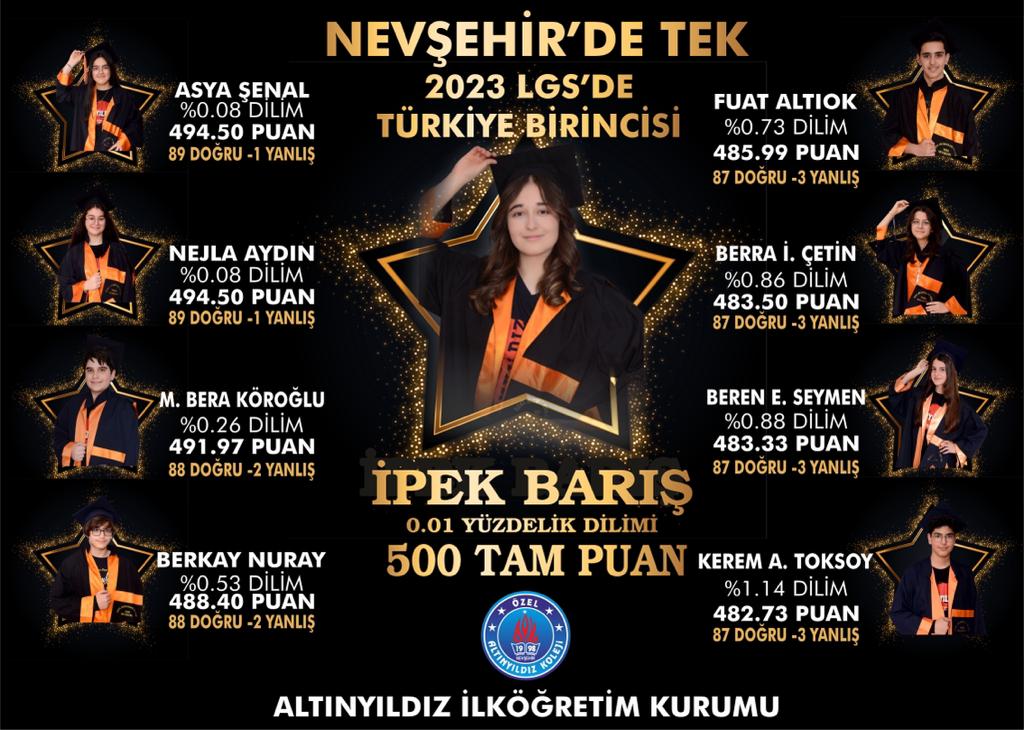 Sınavın ismi değişse de başarının ismi yine Altınyıldız İlköğretim Kurumu olmuştur. Altınyıldız İlköğretim Kurumu kurulduğu günden bugüne Ortaöğretime geçiş sınavlarında 63 Türkiye 1.liği elde etmiş ve okul puan ortalamaları ile yıllardır Nevşehir 1.si okul olmuştur. Elde ettiği sınav puan ortalamaları ile akademik olarak, sosyo-kültürel alanlardaki başarıları ve Türkiye’nin en iyi okul kampüslerinden birine sahip olan Altınyıldız Eğitim Kurumları öğrencilerine sunduğu mükemmel öğretim imkânları, sosyal yaşam alanlarıyla ‘aklın ve bilimin ışığında’ Türkiye’nin geleceğini yetiştirmeye devam ediyor ve Nevşehir’in ve Türkiye’nin öncü okulu olmaya devam etmektedir.