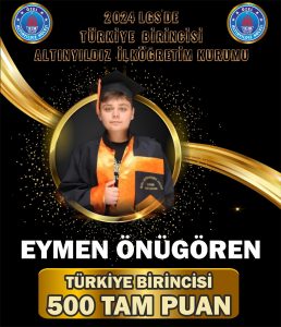 2 Haziran 2024 Pazar günü yapılan Liselere Geçiş Sistemi sınavında Altınyıldız İlköğretim Kurumu öğrencisi EYMEN ÖNÜGÖREN, resmî sonuçlara göre tüm soruları doğru yaparak Türkiye 1.liği elde etmiştir. Kurum Müdürümüz Sayın AHMET ÜNAL yaptığı açıklamada: